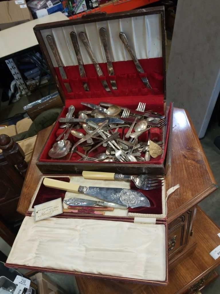 BOX OF CUTLERY, ONEIDA SERVICE PLATE, BIRKS EP, AND OTHER