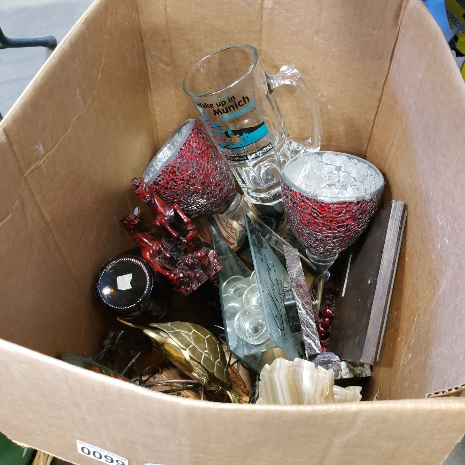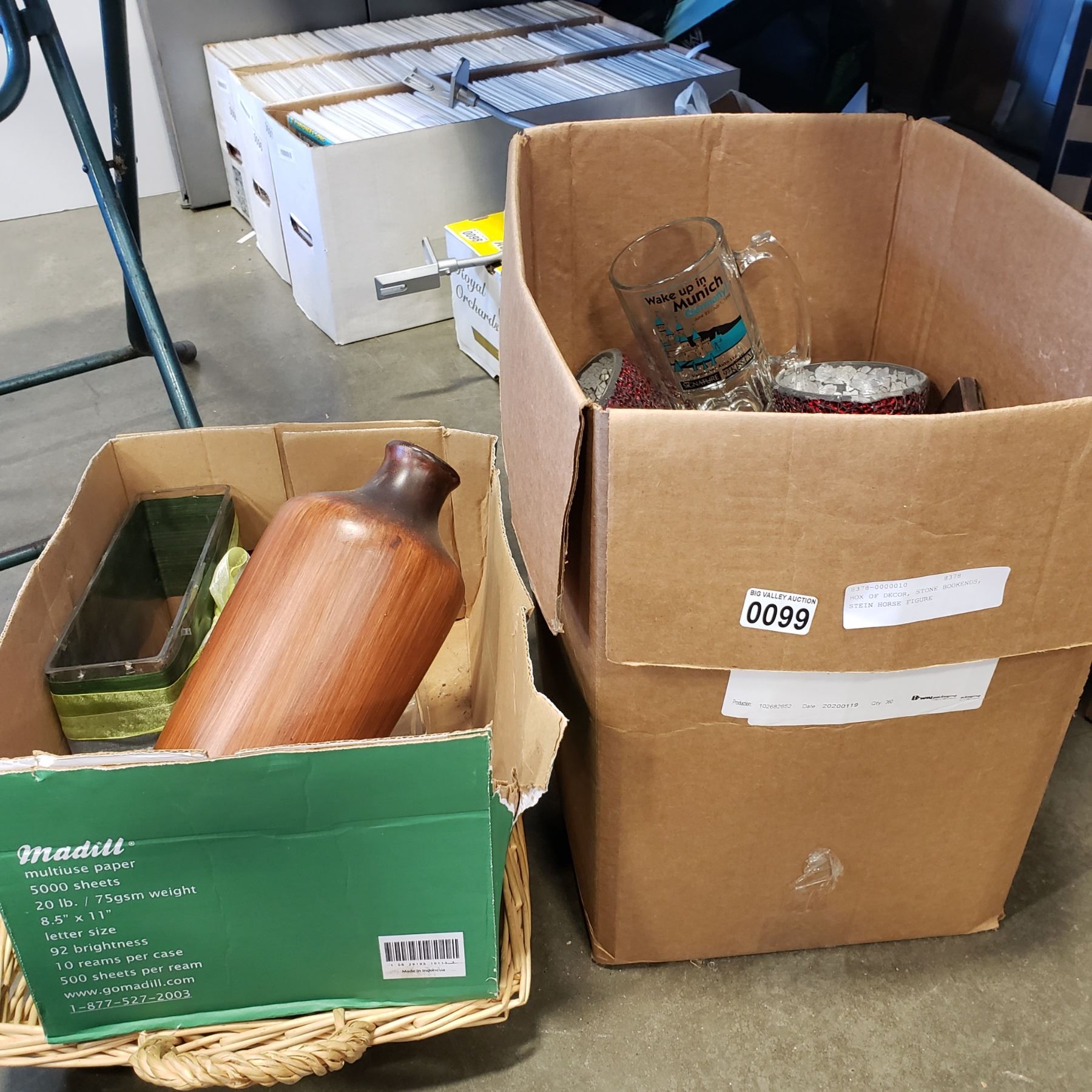 BOX OF DECOR, STONE BOOKENDS, STEIN HORSE FIGURE