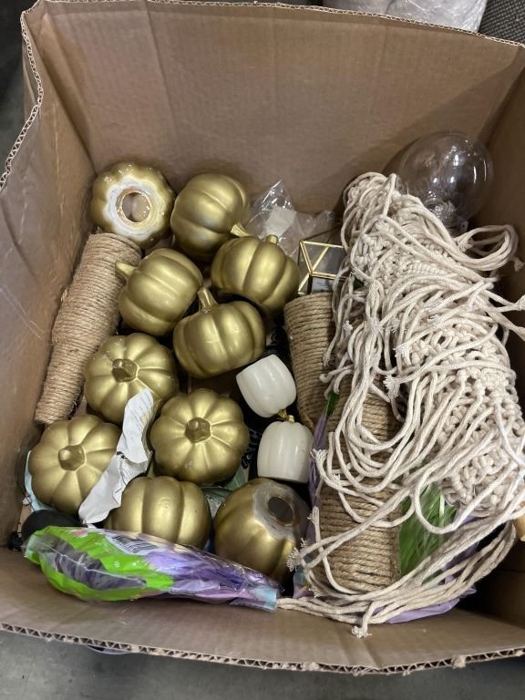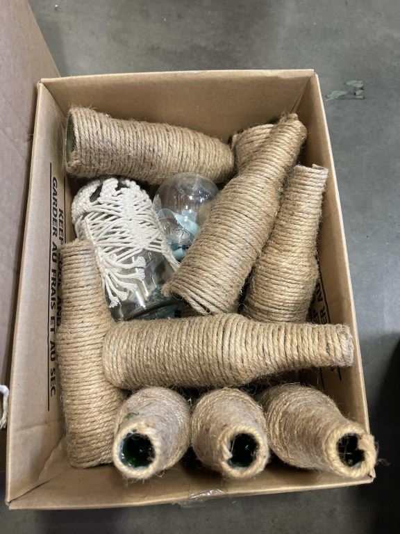 BOX OF DECORATIVE WRAP BOTTLES AND MORE