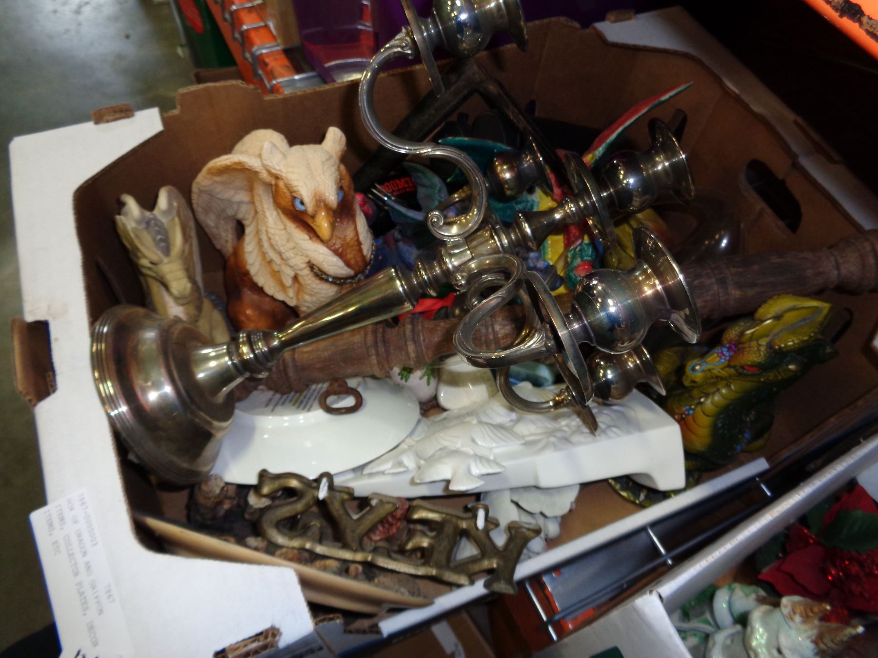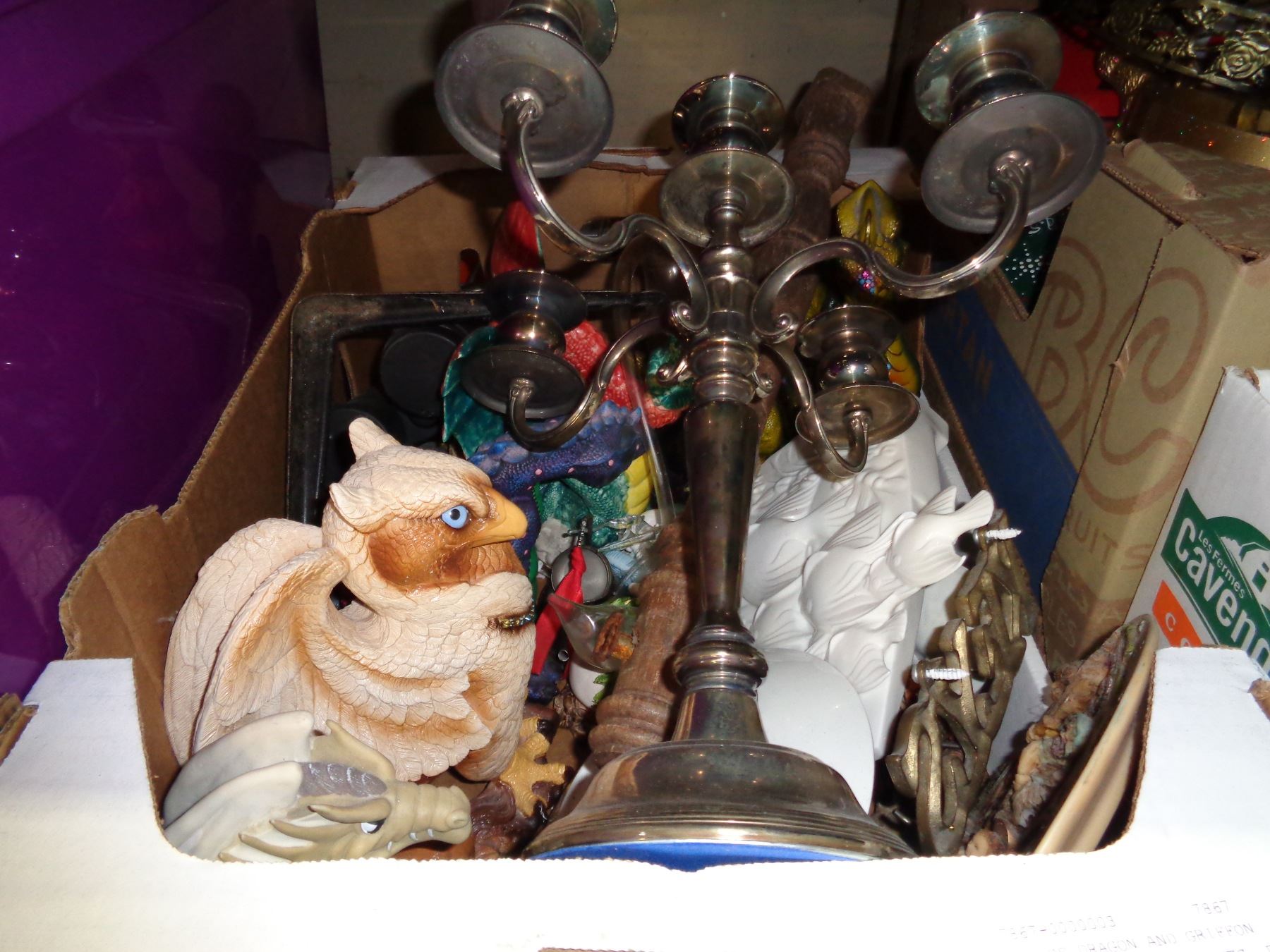 BOX OF DRAGON AND GRIFFON ITEMS, COLLECTOR PLATES, DECOR ITEMS, ETC