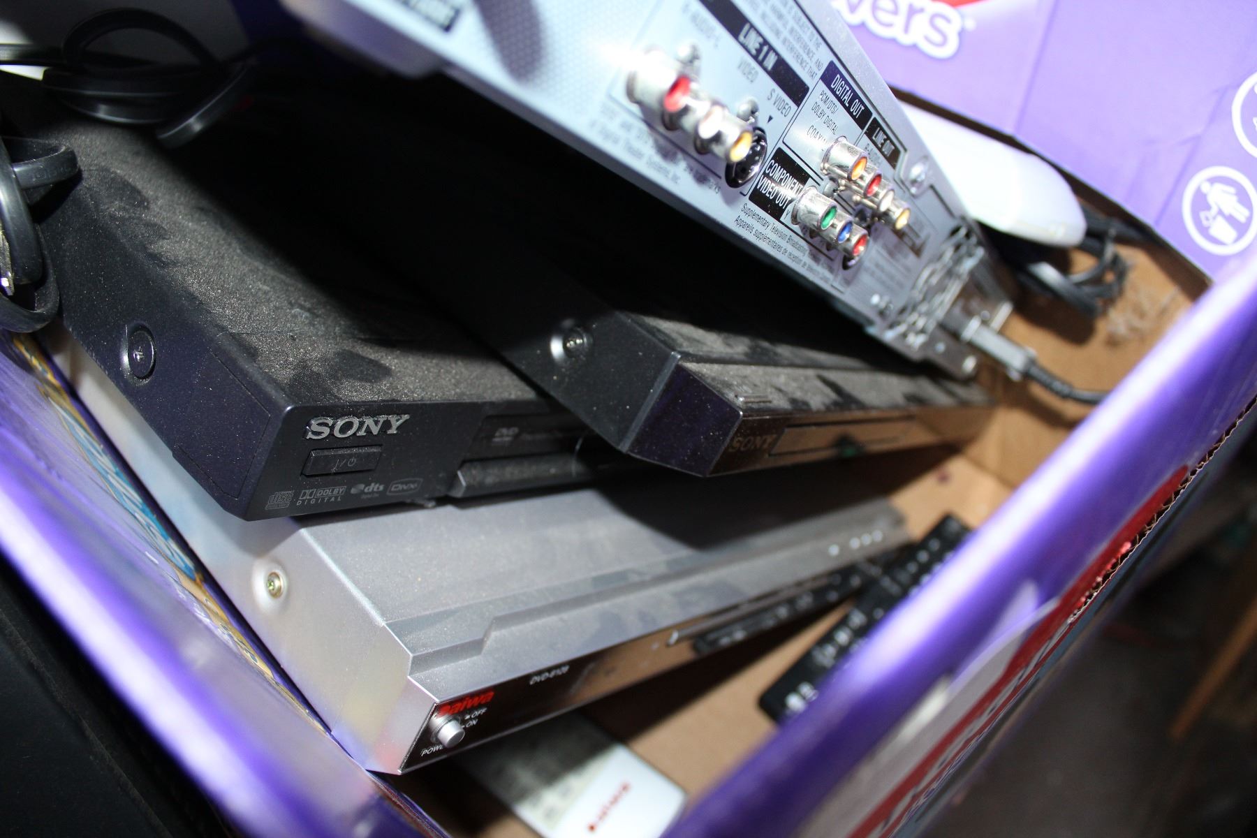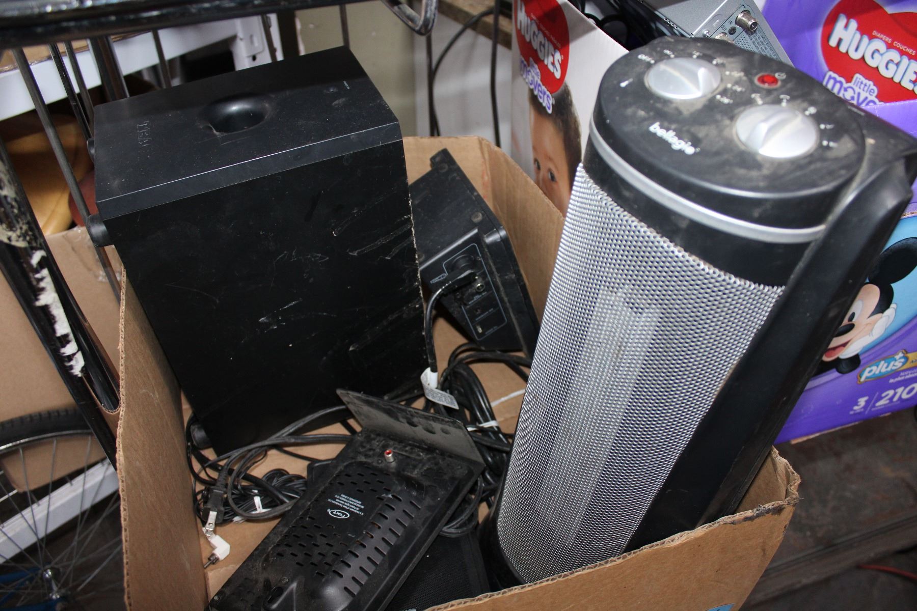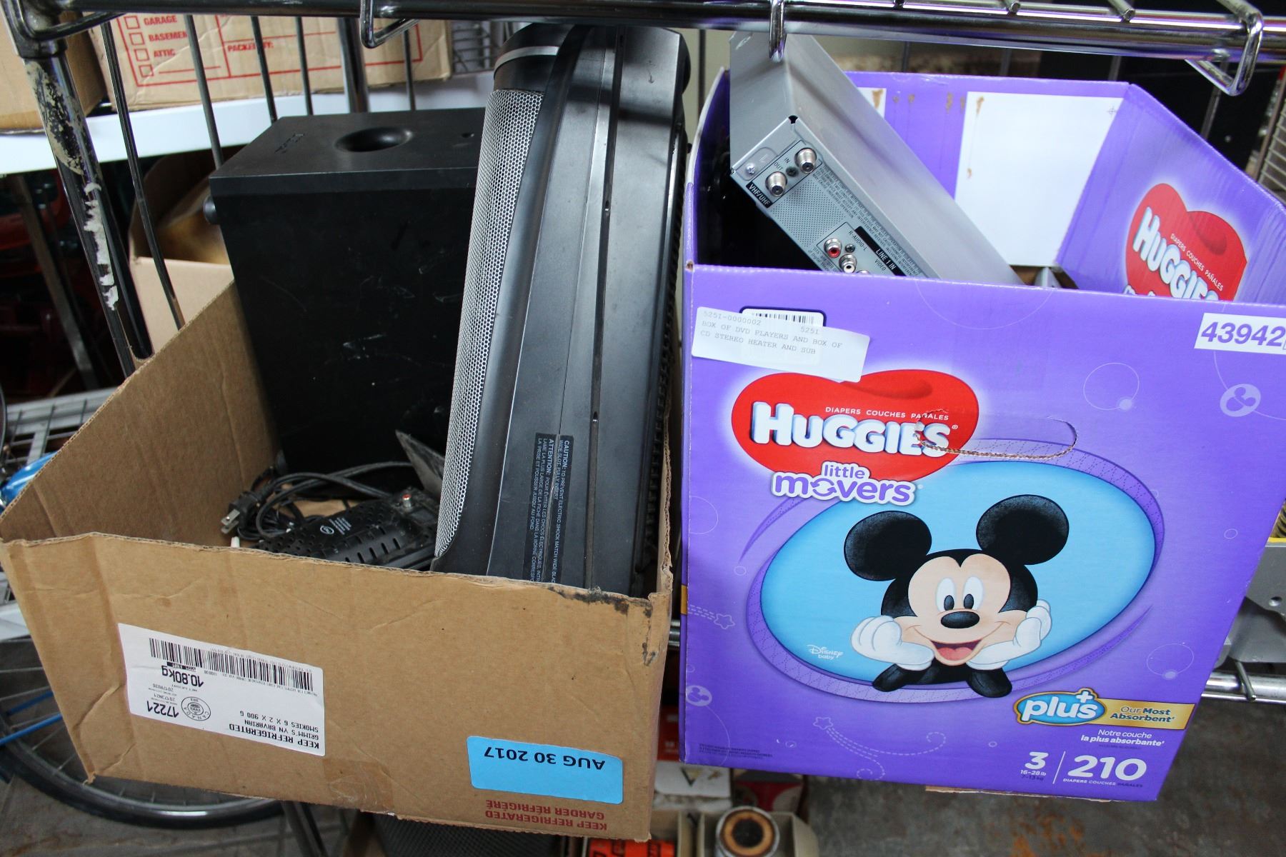 BOX OF DVD PLAYERS AND BOX OF CD STEREO HEATER AND SUB