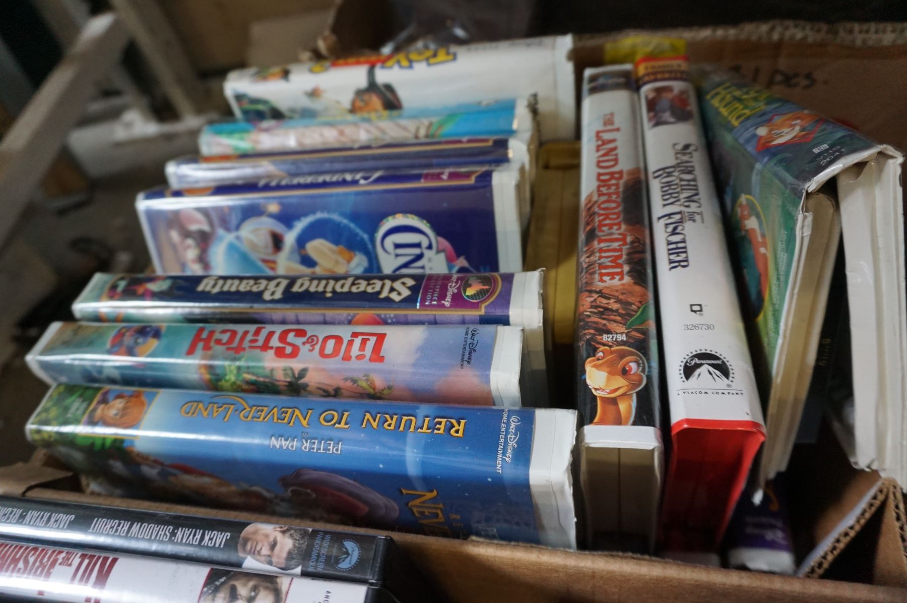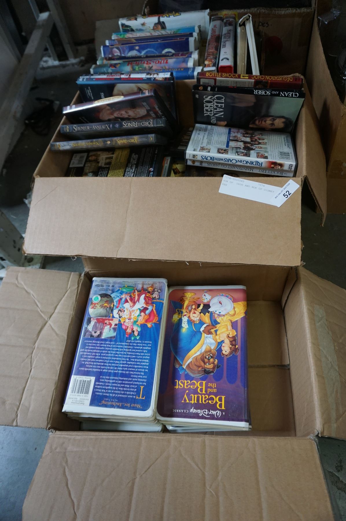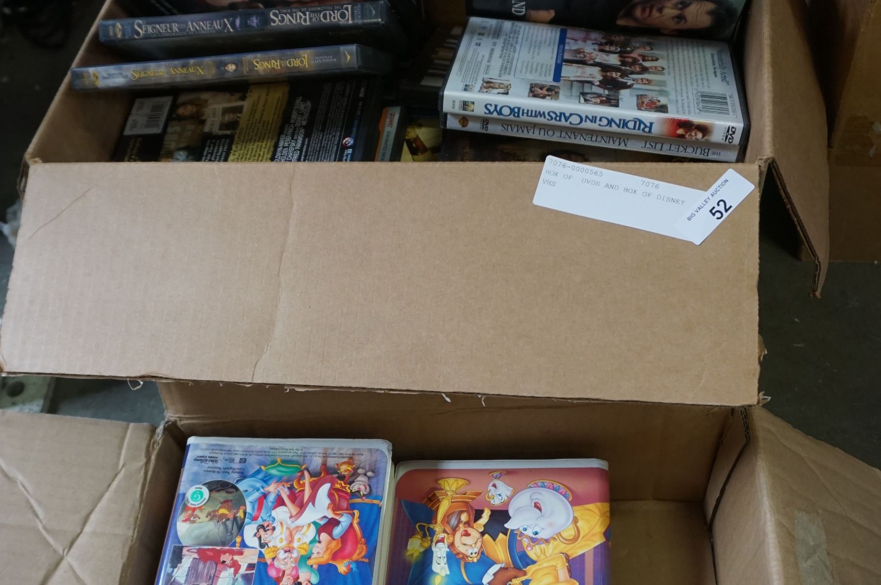 BOX OF DVDS AND BOX OF DISNEY VHS