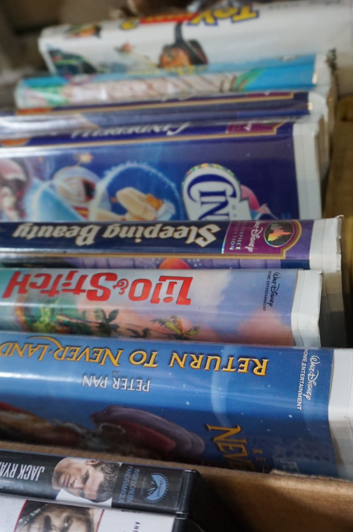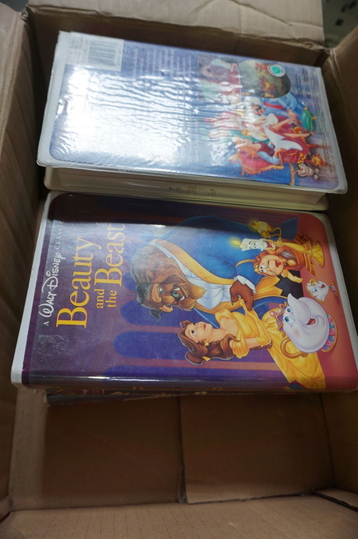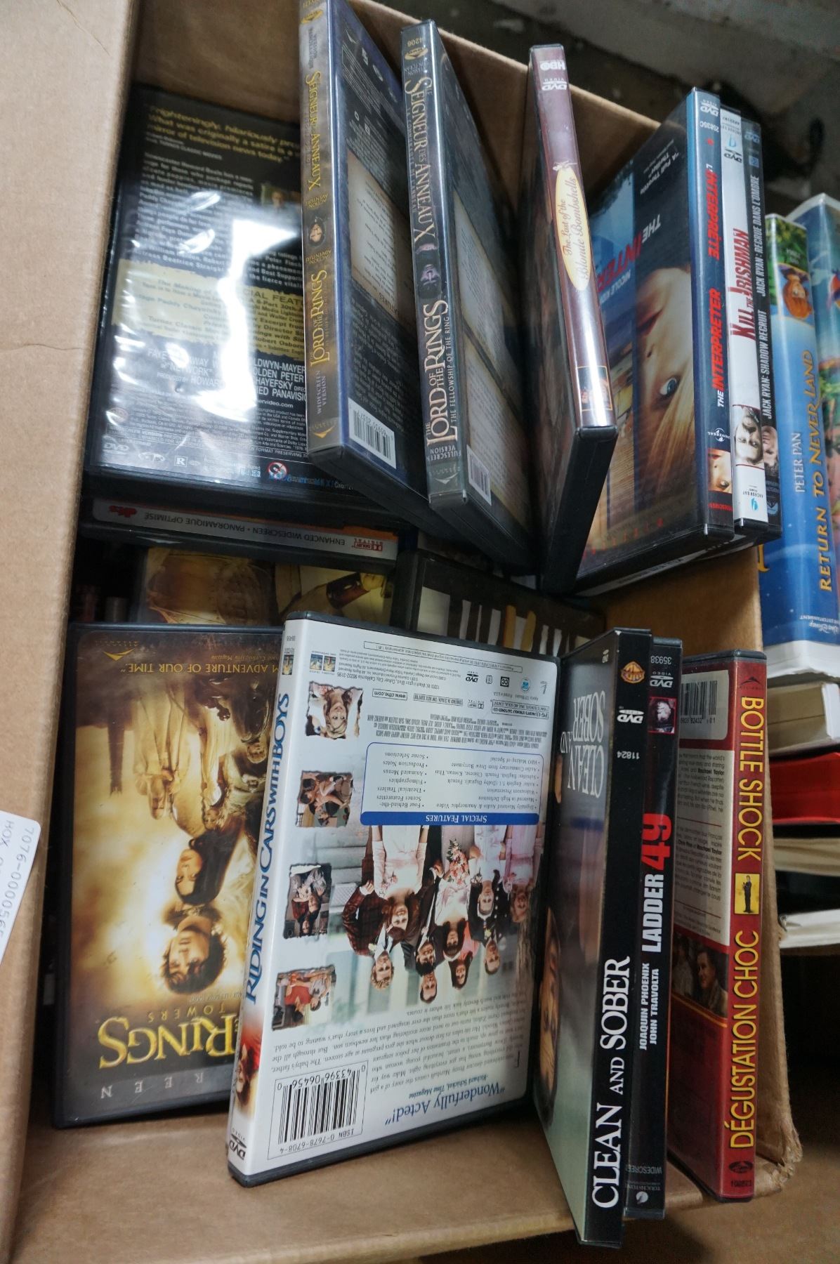 BOX OF DVDS AND BOX OF DISNEY VHS