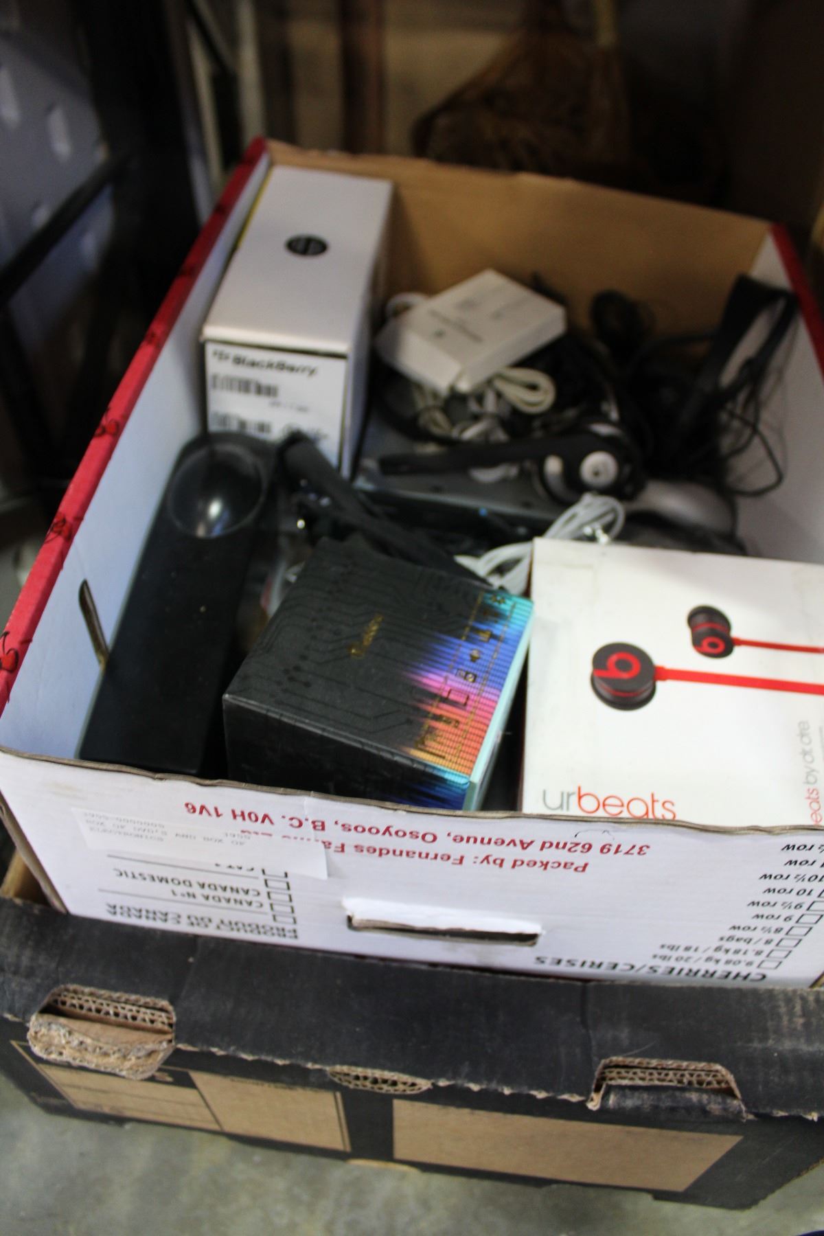 BOX OF DVDS AND BOX OF ELECTRONICS
