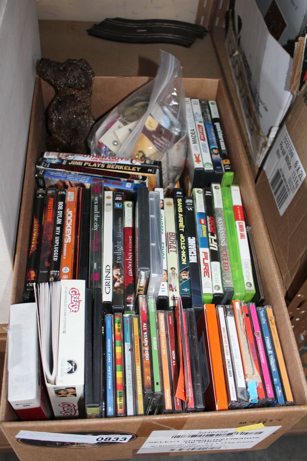 BOX OF DVDS BLURAYS VIDEOGAMES AND CDS
