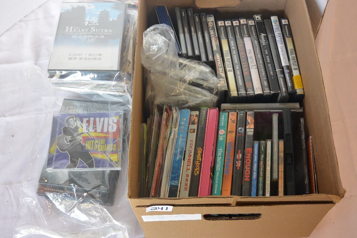 BOX OF DVDS CDS AND PLAY STATION GAMES