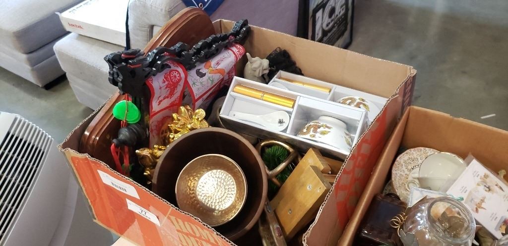 BOX OF EASTERN AND WOOD DECOR