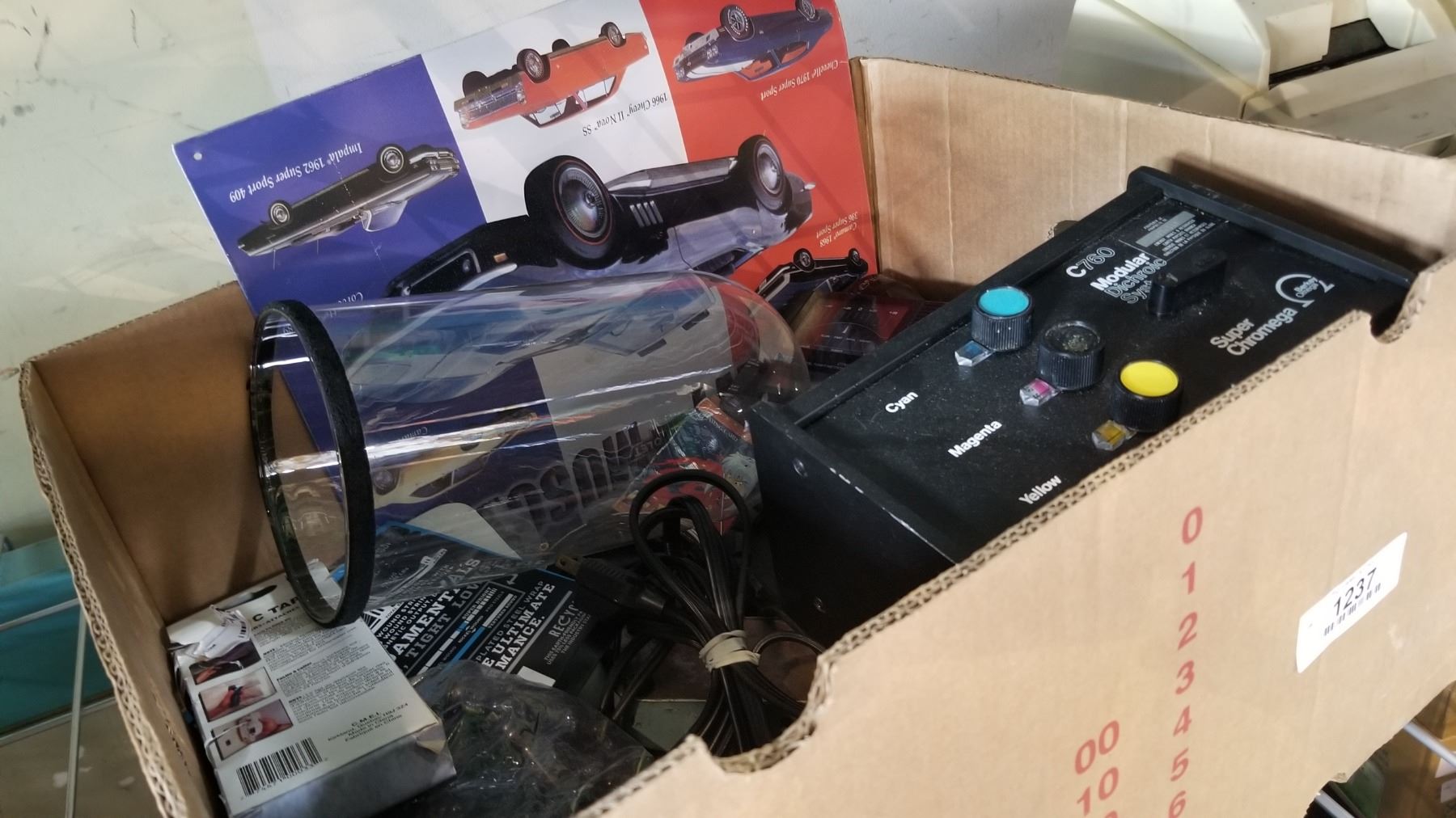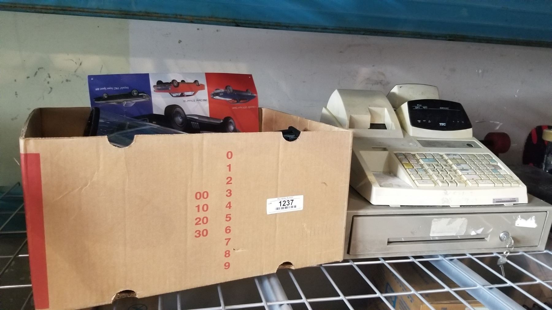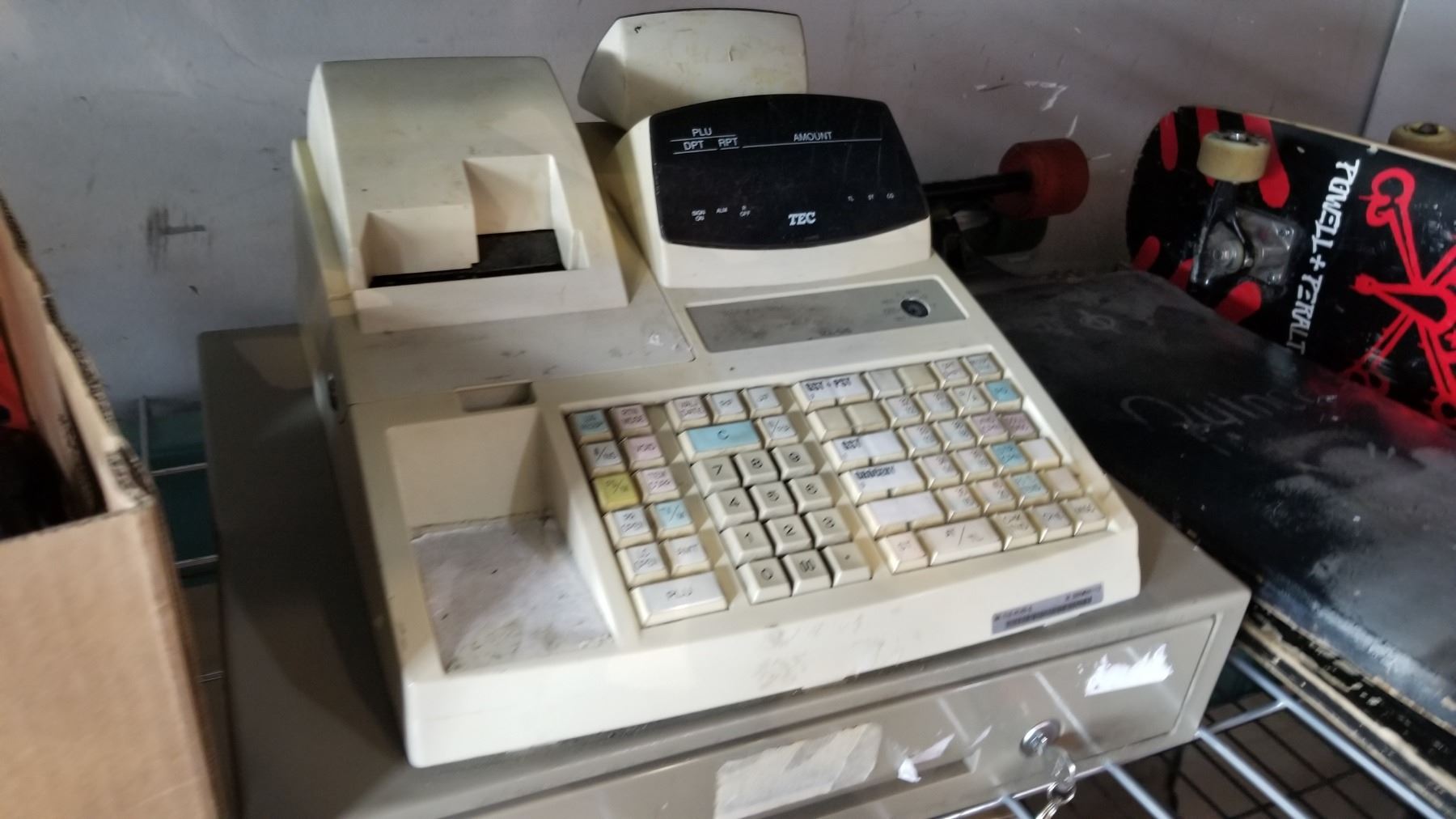 BOX OF ELECREONICS, ESTATE GOODS AND CASH REGISTER
