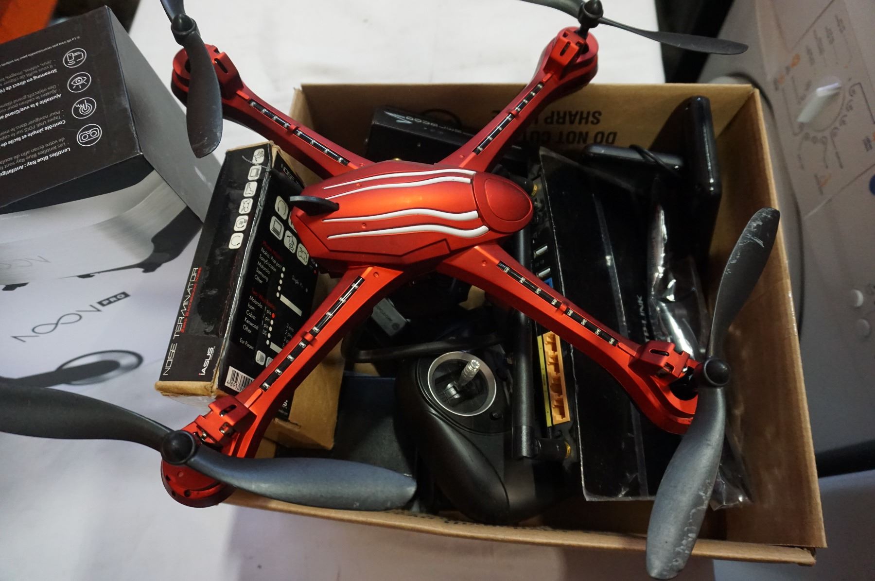 BOX OF ELECTRONICS AND VR HEADSETS