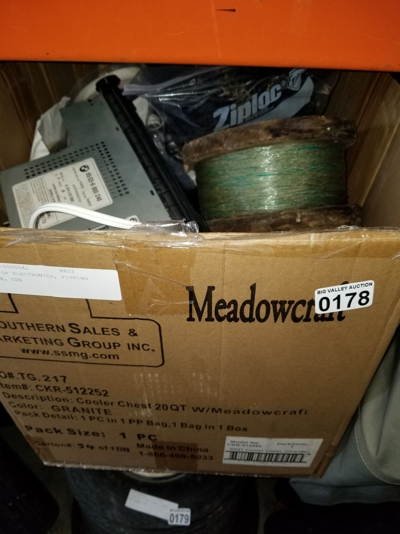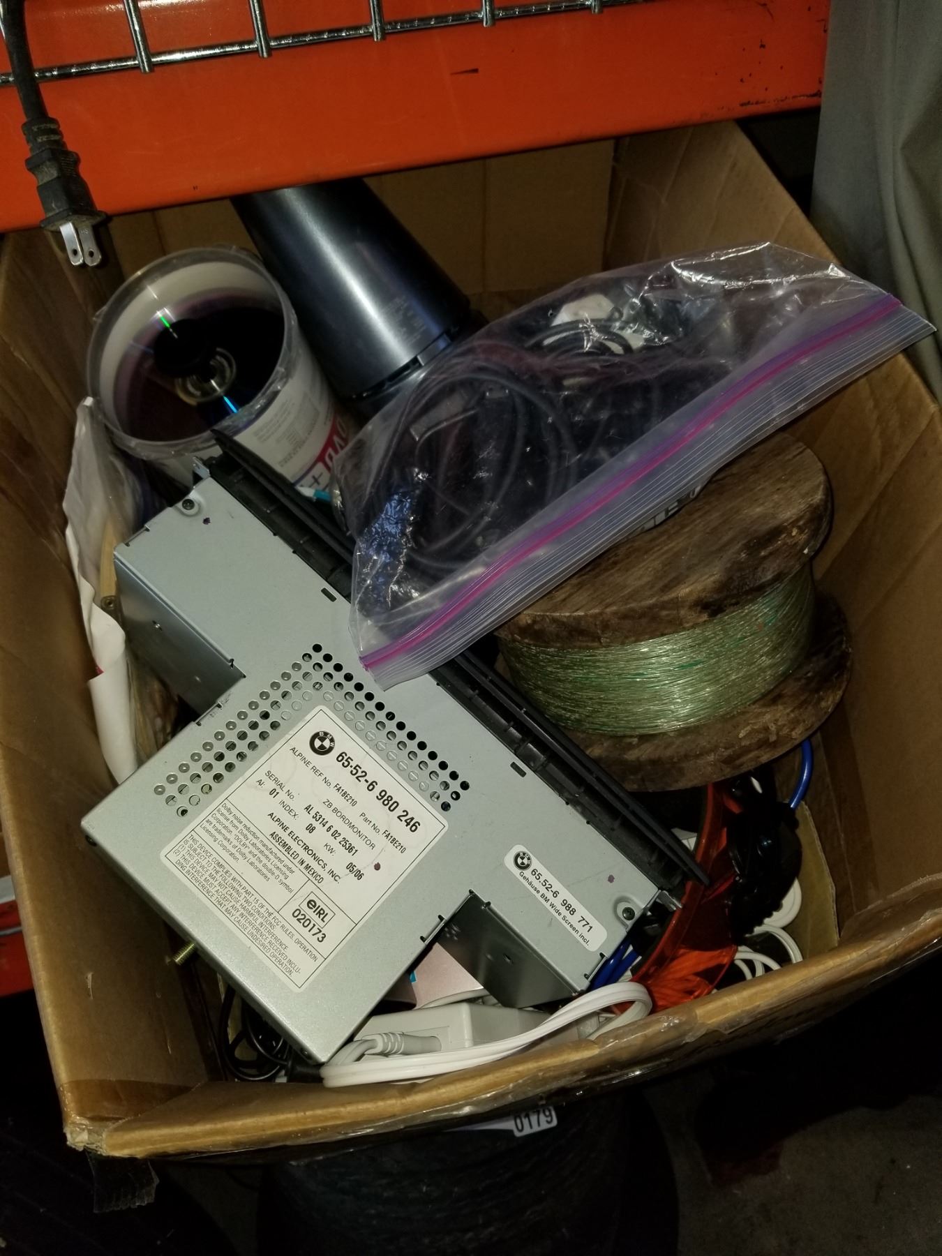 BOX OF ELECTRONICS, FISHING LINE, CDS