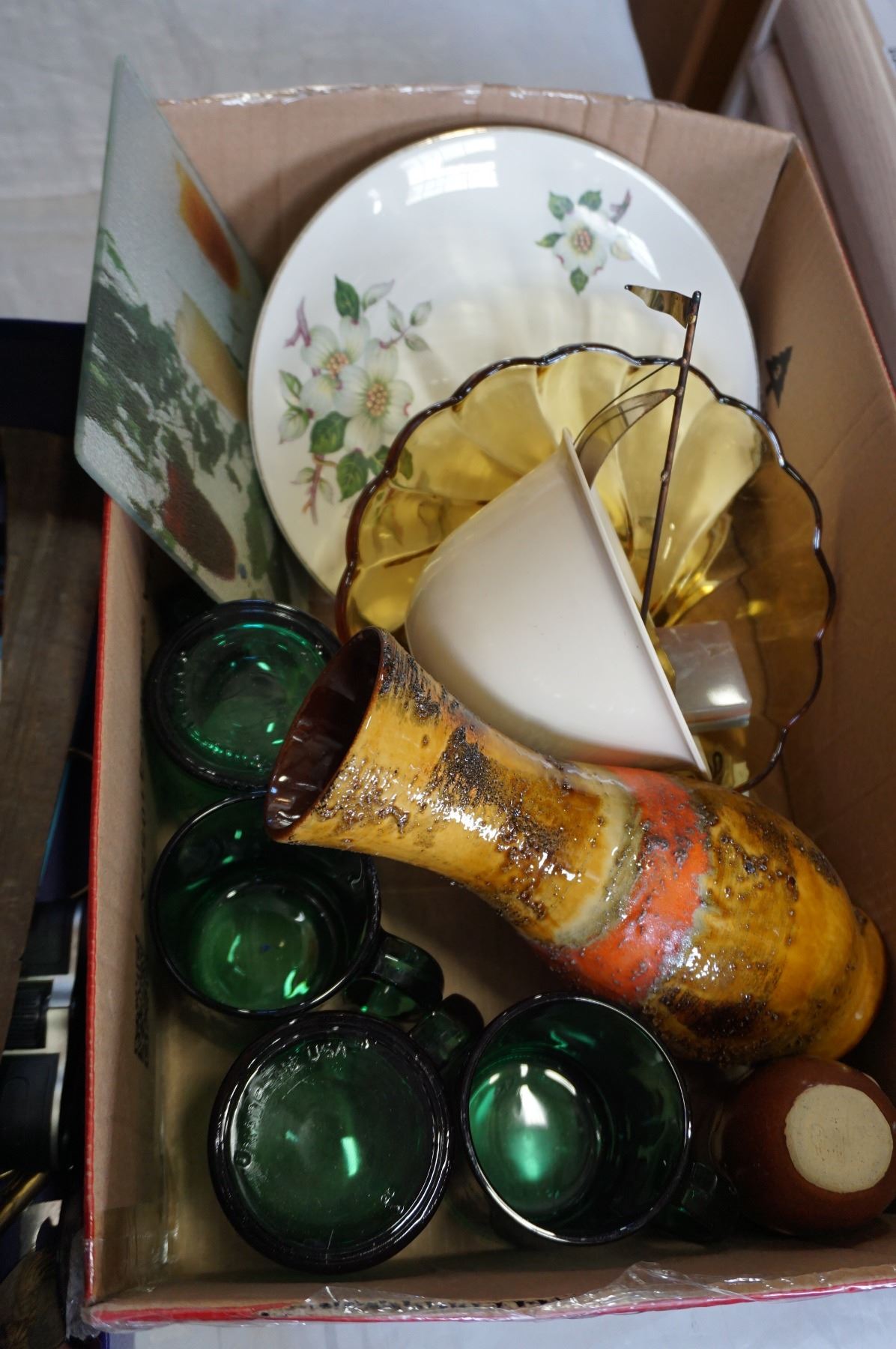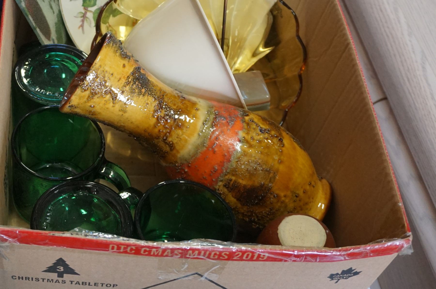 BOX OF ENGLISH PLATES, GERMAN VASE, AND COLLECTIBLES