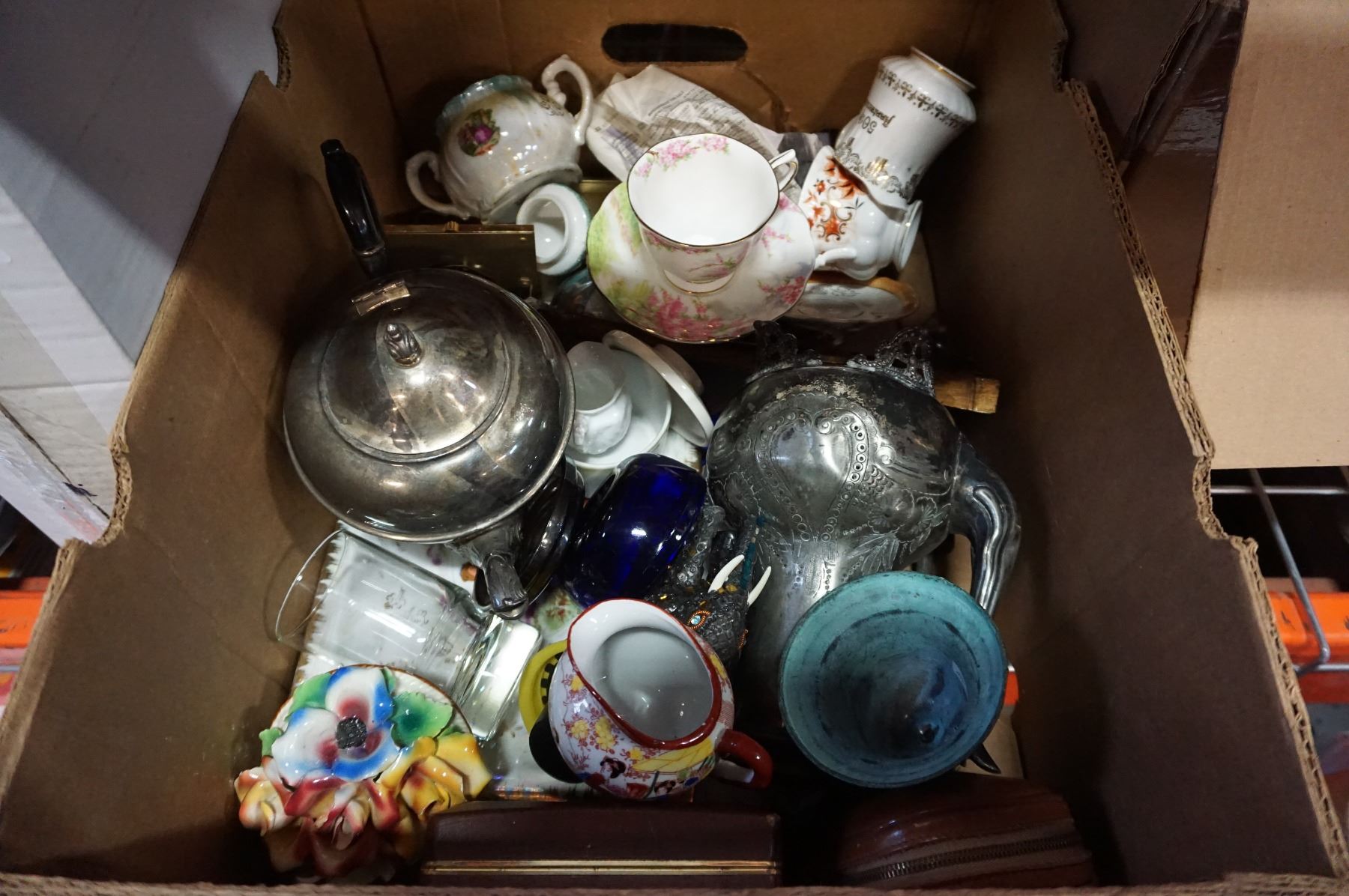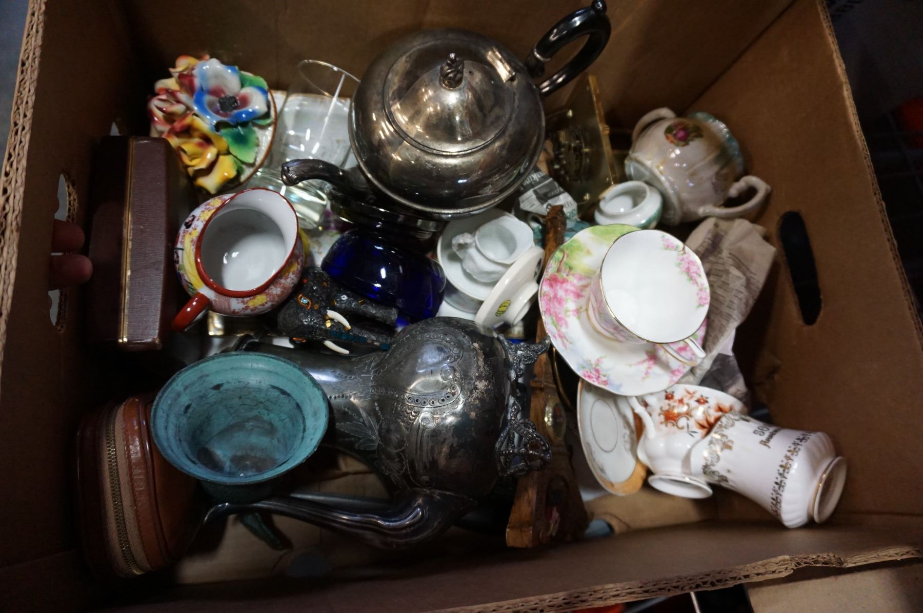 BOX OF ESTATE COLLECTIBLES W/ ROYAL ALBERT ETC