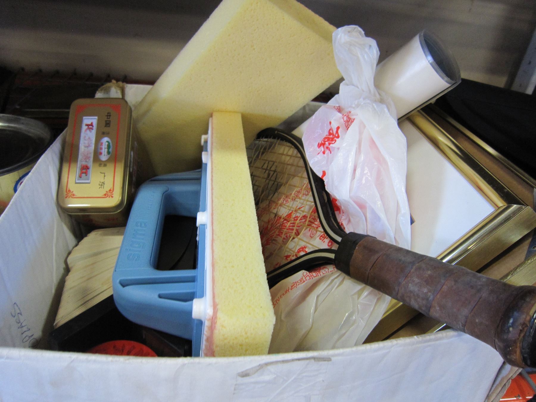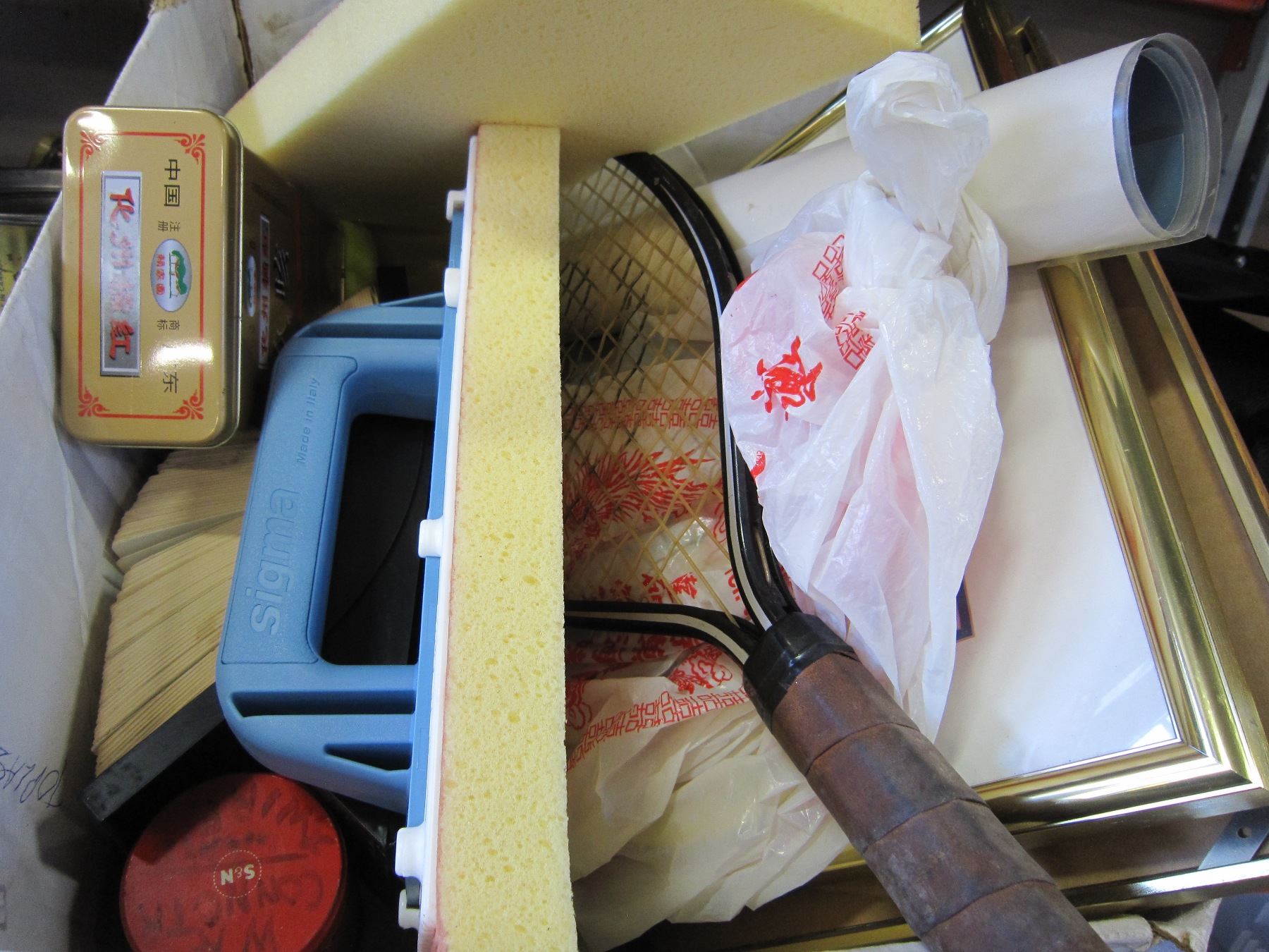 BOX OF ESTATE ITEMS W/ 3 PICTURES AND FRAMES