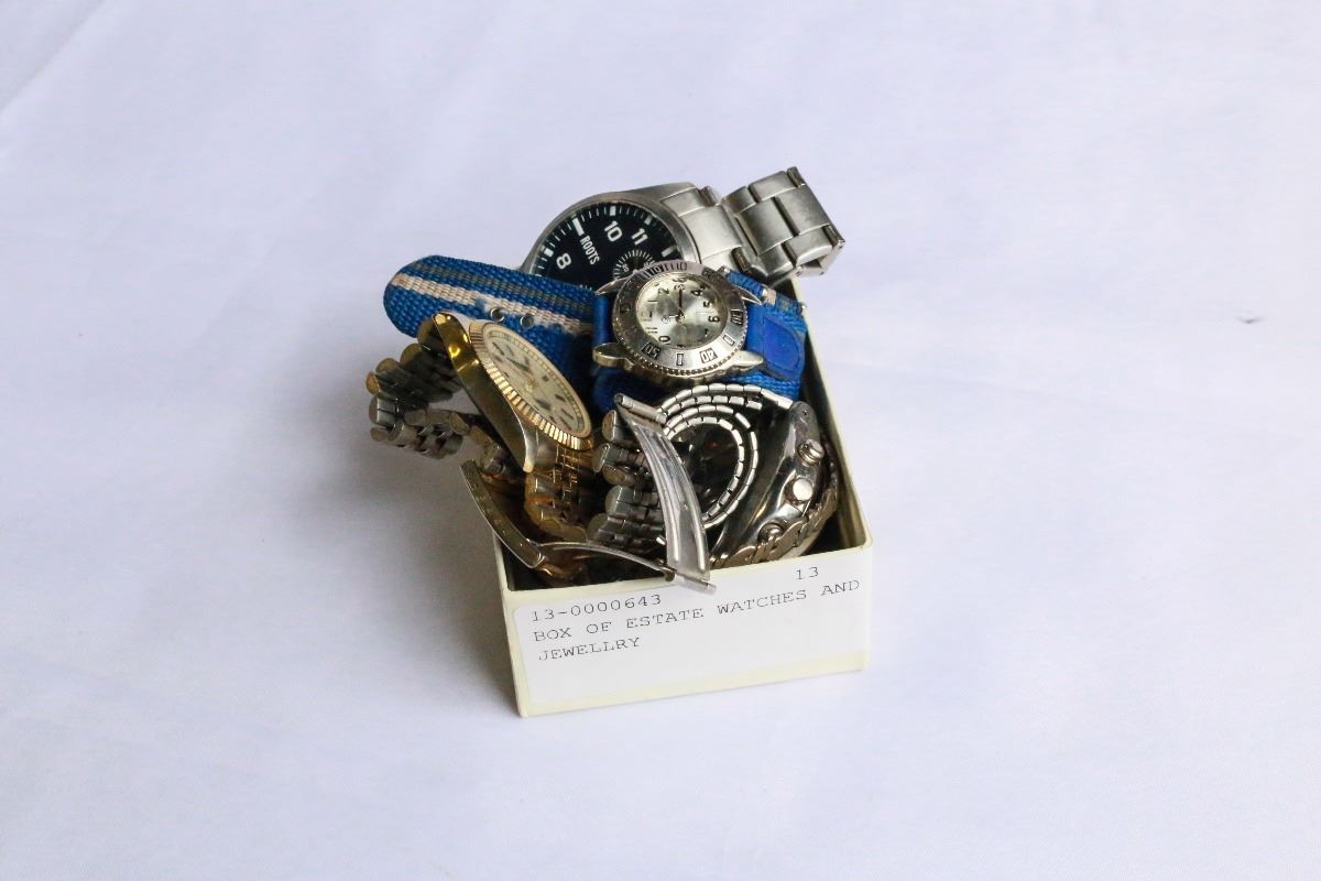 BOX OF ESTATE WATCHES AND JEWELLRY