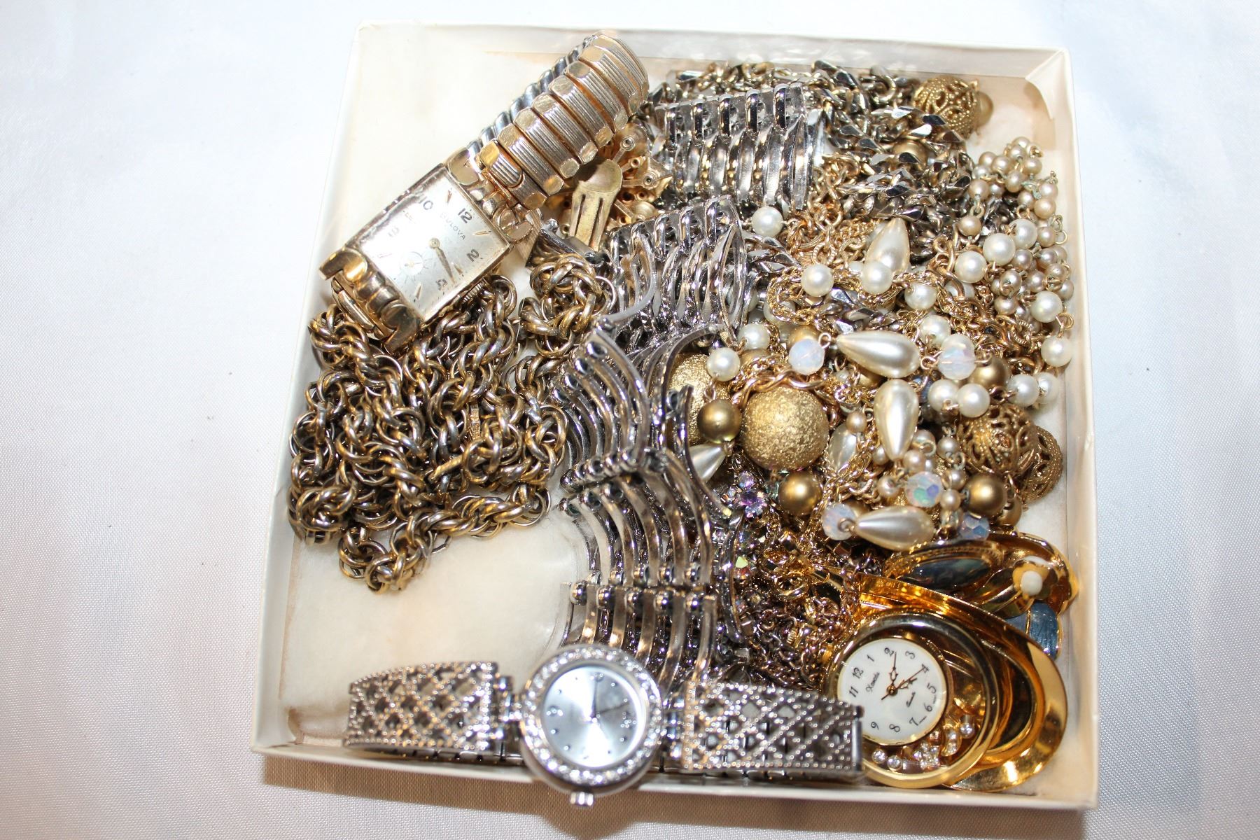 BOX OF ESTATE WATCHES AND JEWELLRY