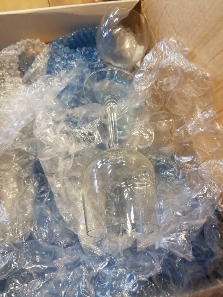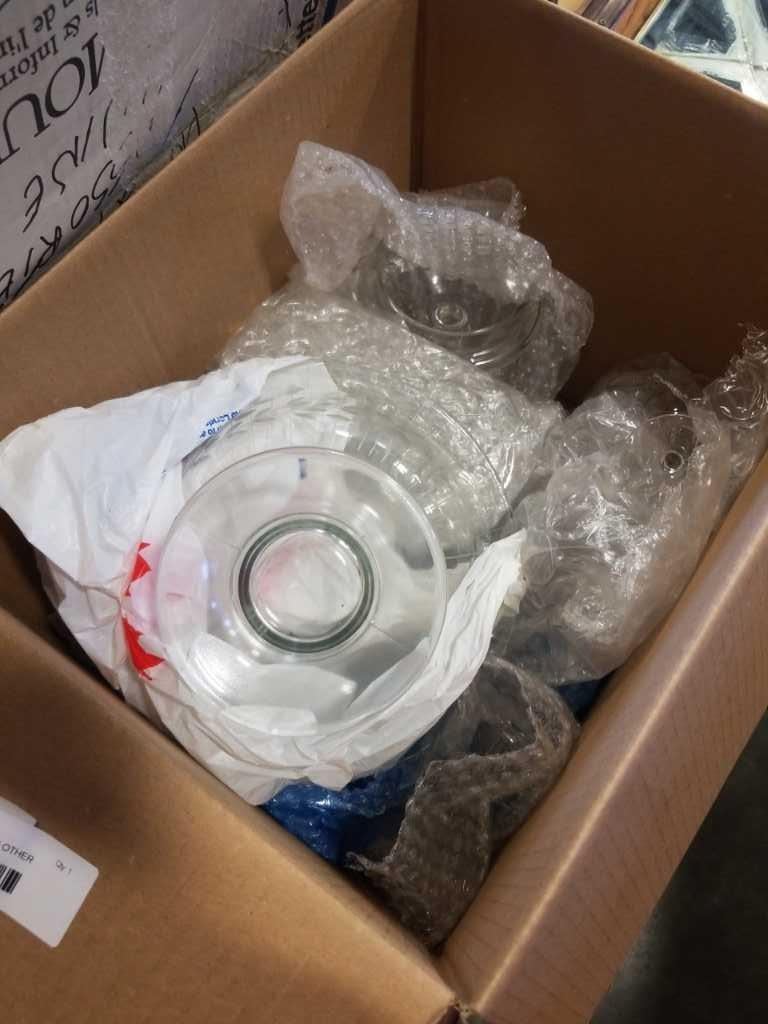 BOX OF ETCHED GLASS AND OTHER GLASSWARE, STEMWARE