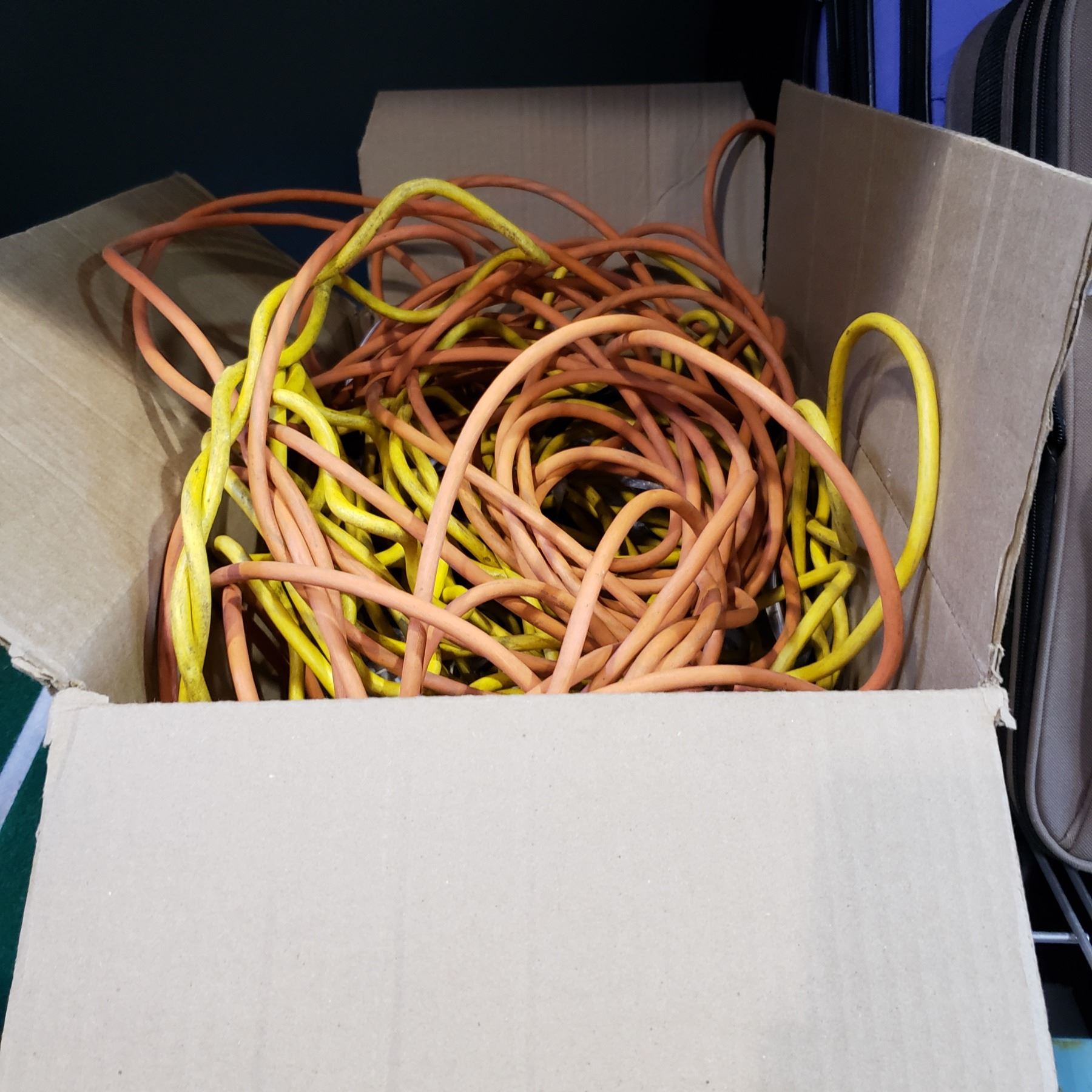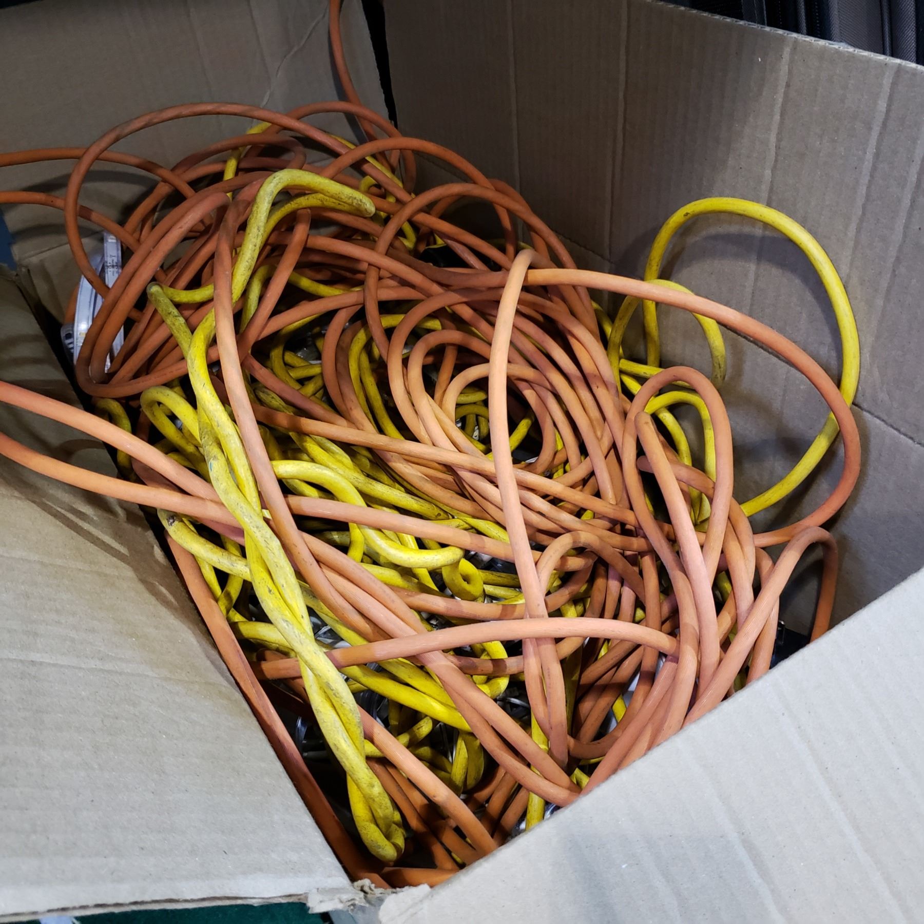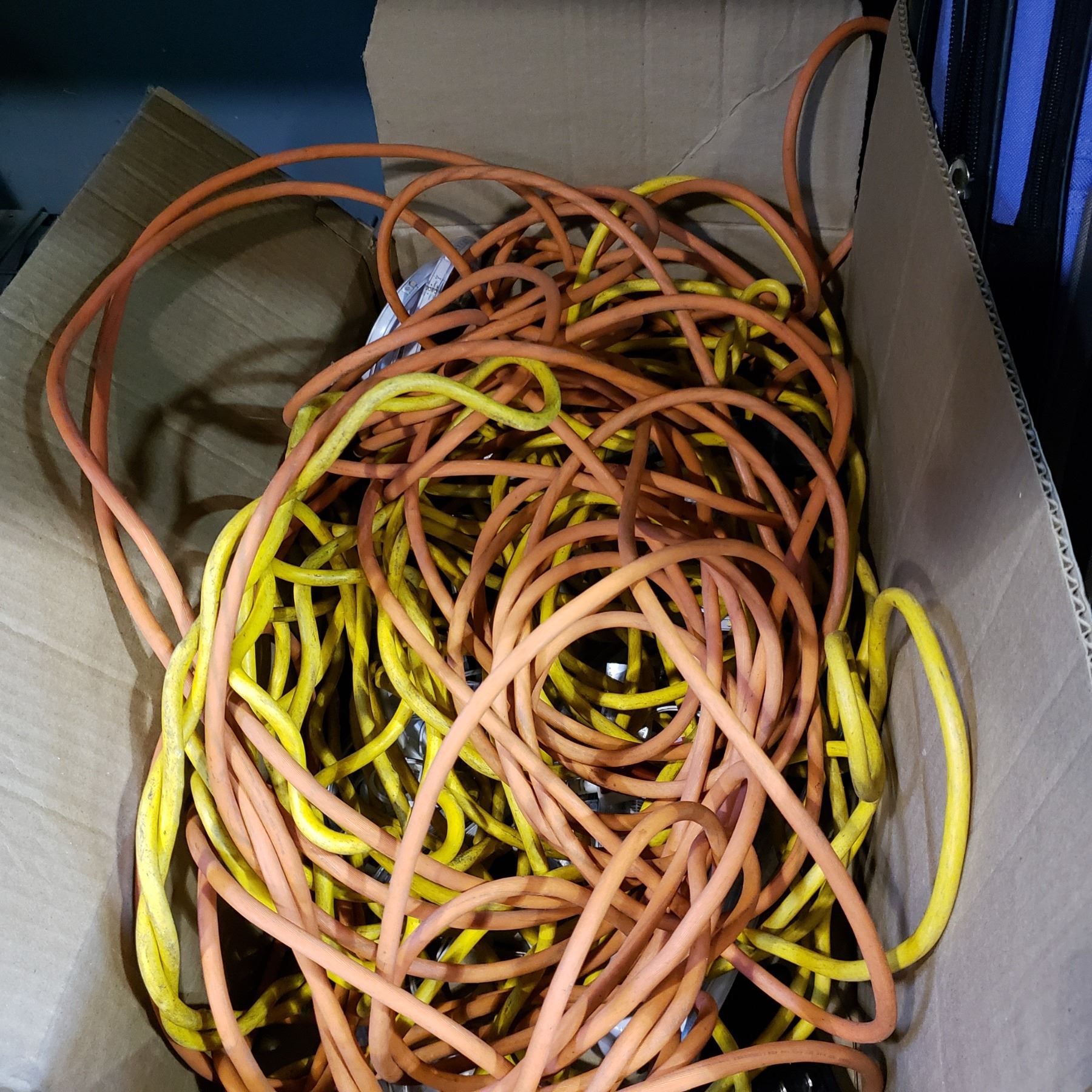 BOX OF EXTENSION CORDS AND LED LIGHTS TRIPS