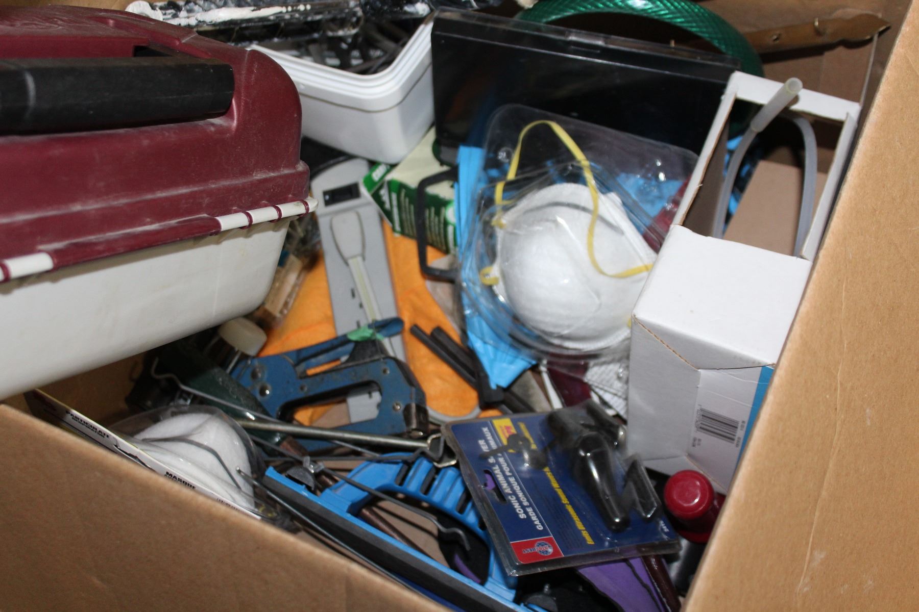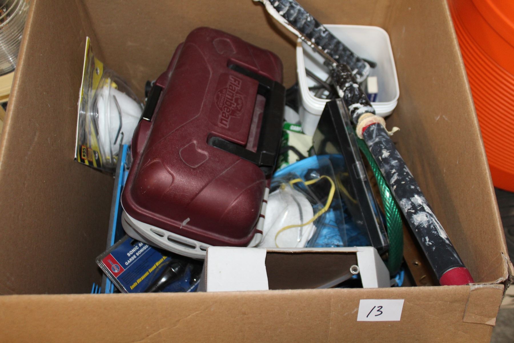 BOX OF FISHING GEAR AND SHOP SUPPLIES