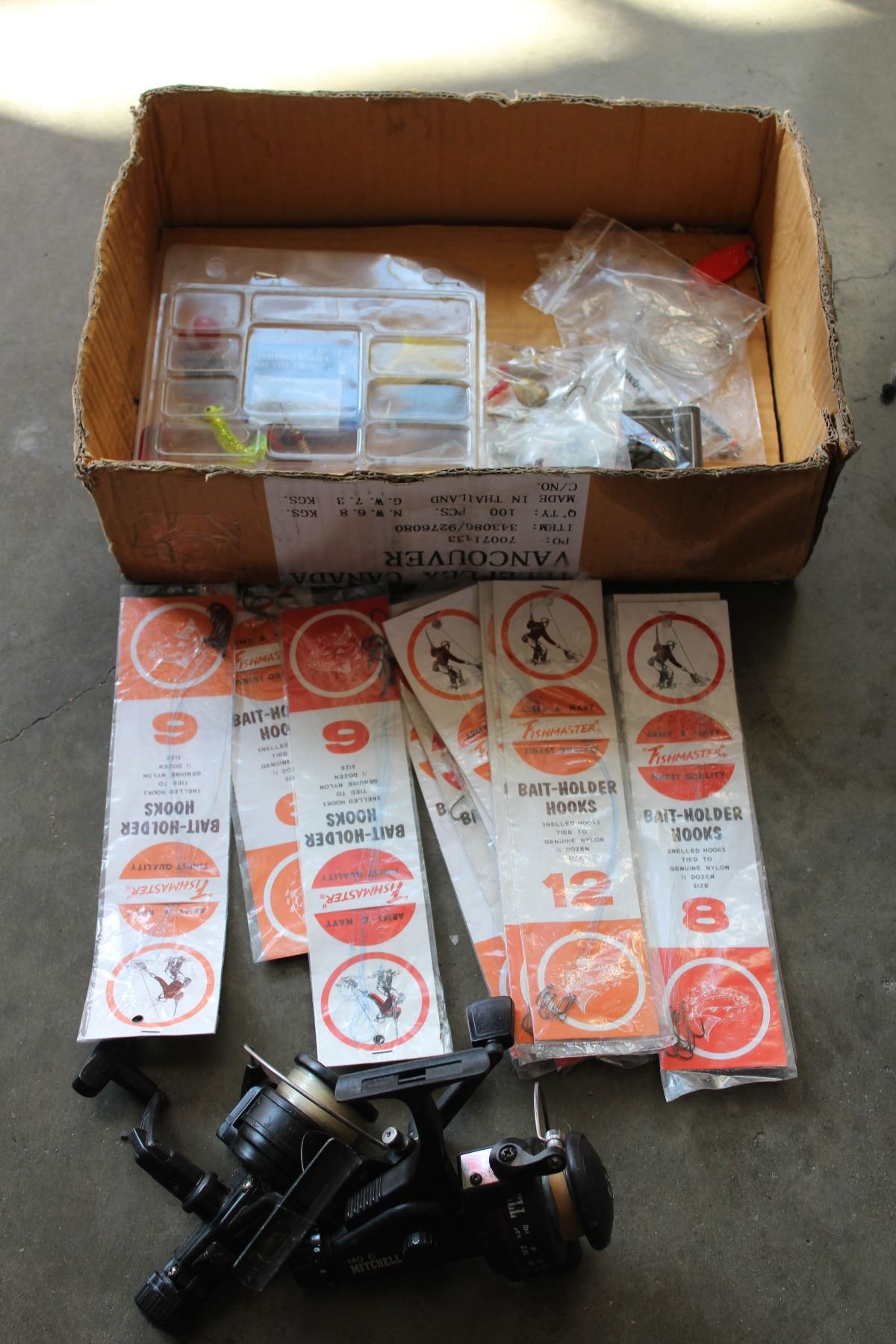 BOX OF FISHING REELS AND LURES