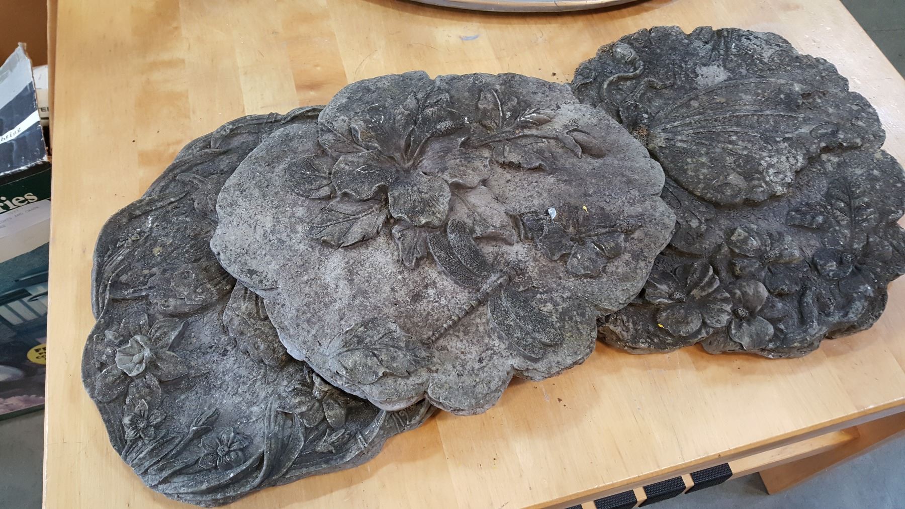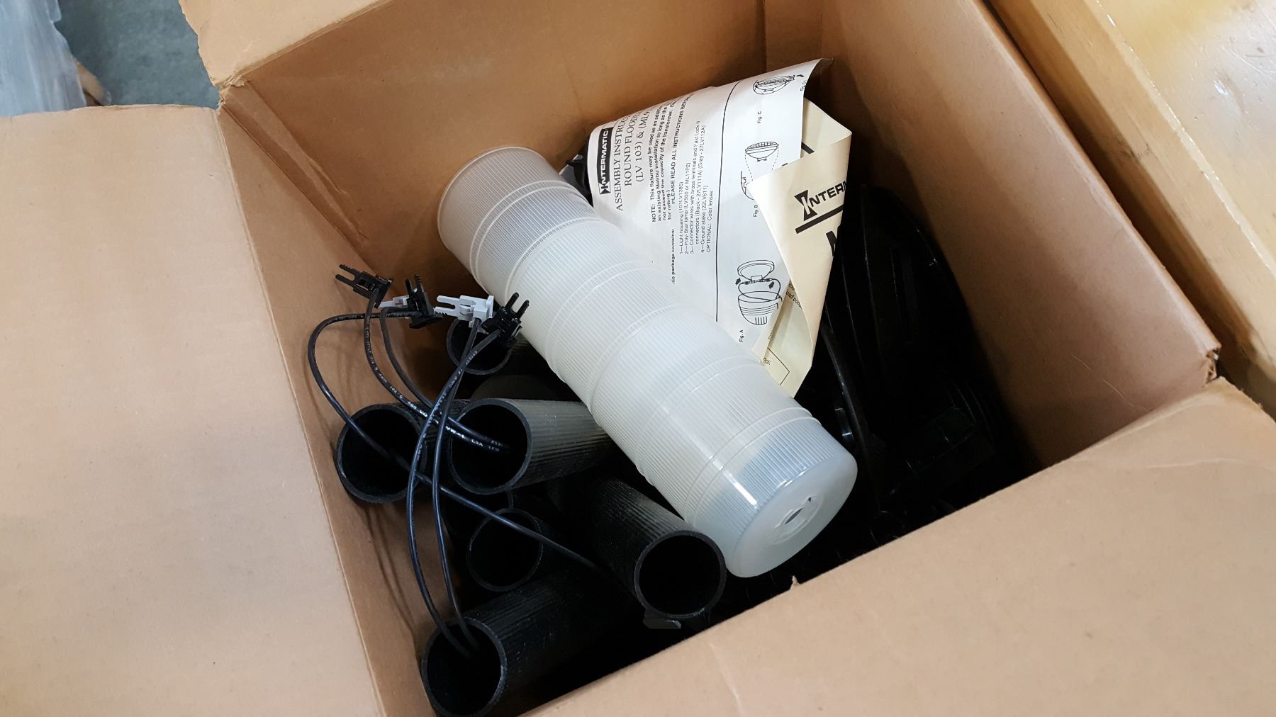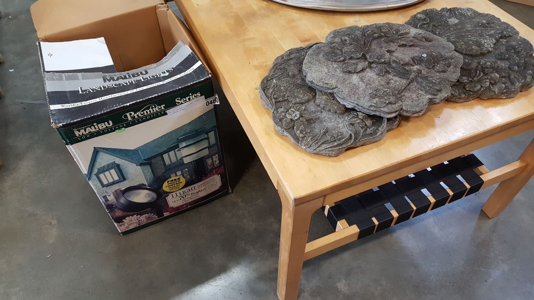 BOX OF GARDEN LIGHTS AND CRATE OF GARDEN STONES