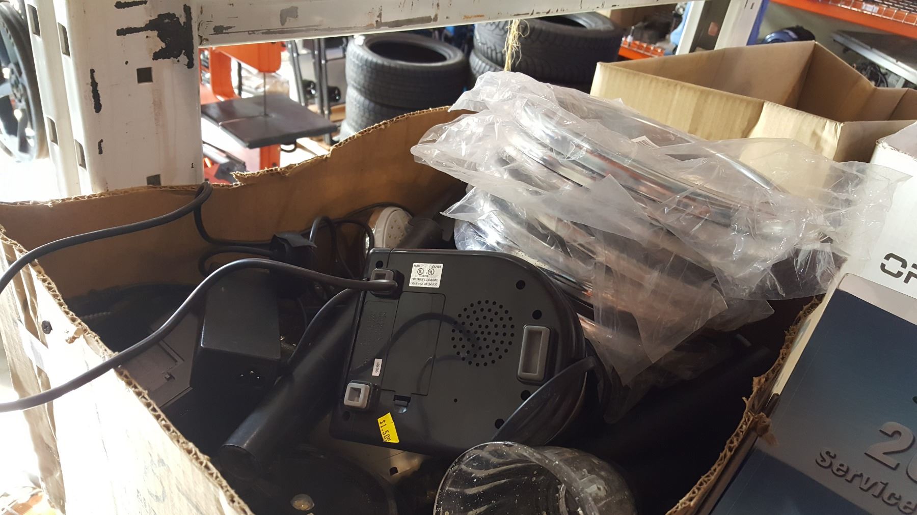 BOX OF GARDEN LIGHTS AND METAL BOWLS