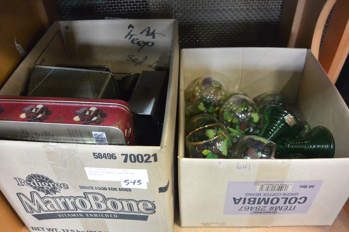 BOX OF GLASSWARE AND BOX OF HOUSEHOLD