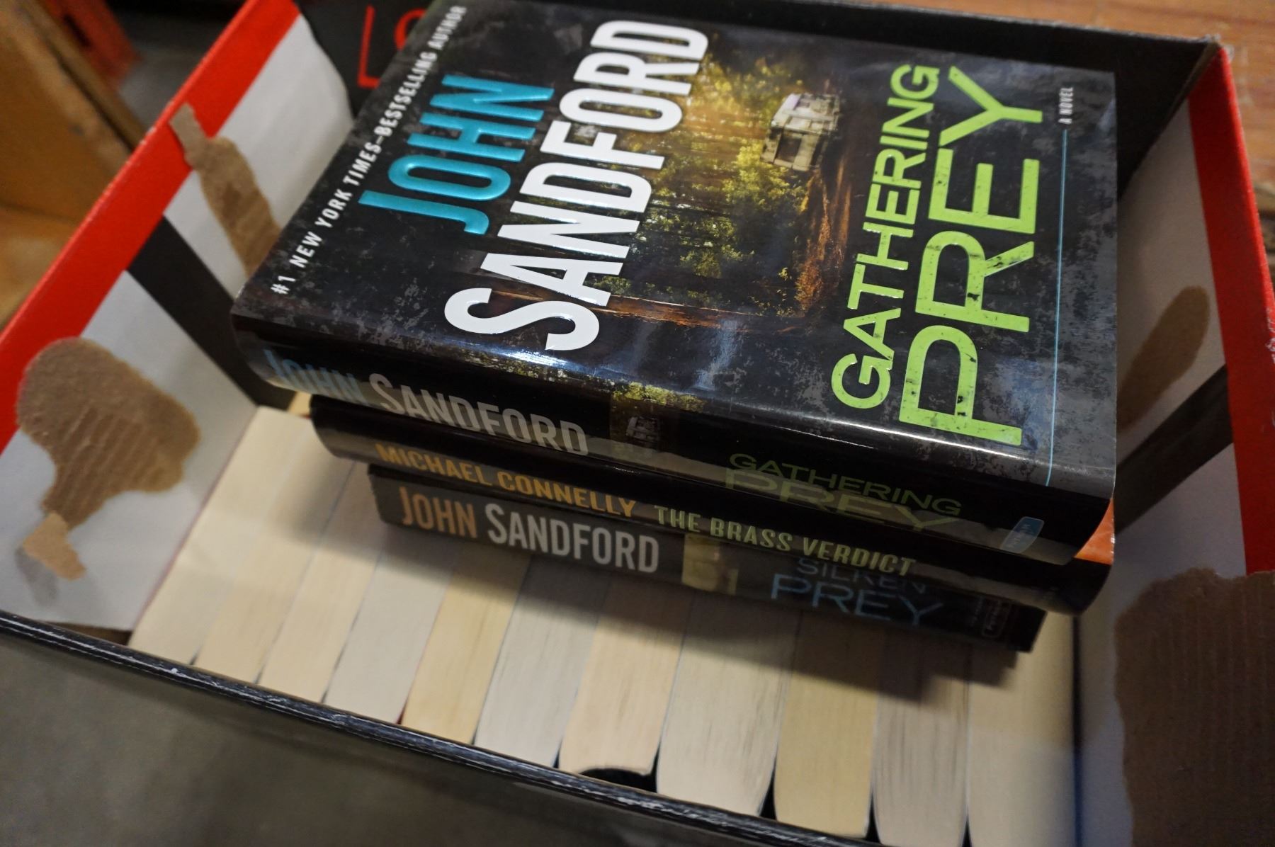 BOX OF HARDCOVER BOOKS - MICHAEL CONNELLY, JOHN SANDFORD, ETC