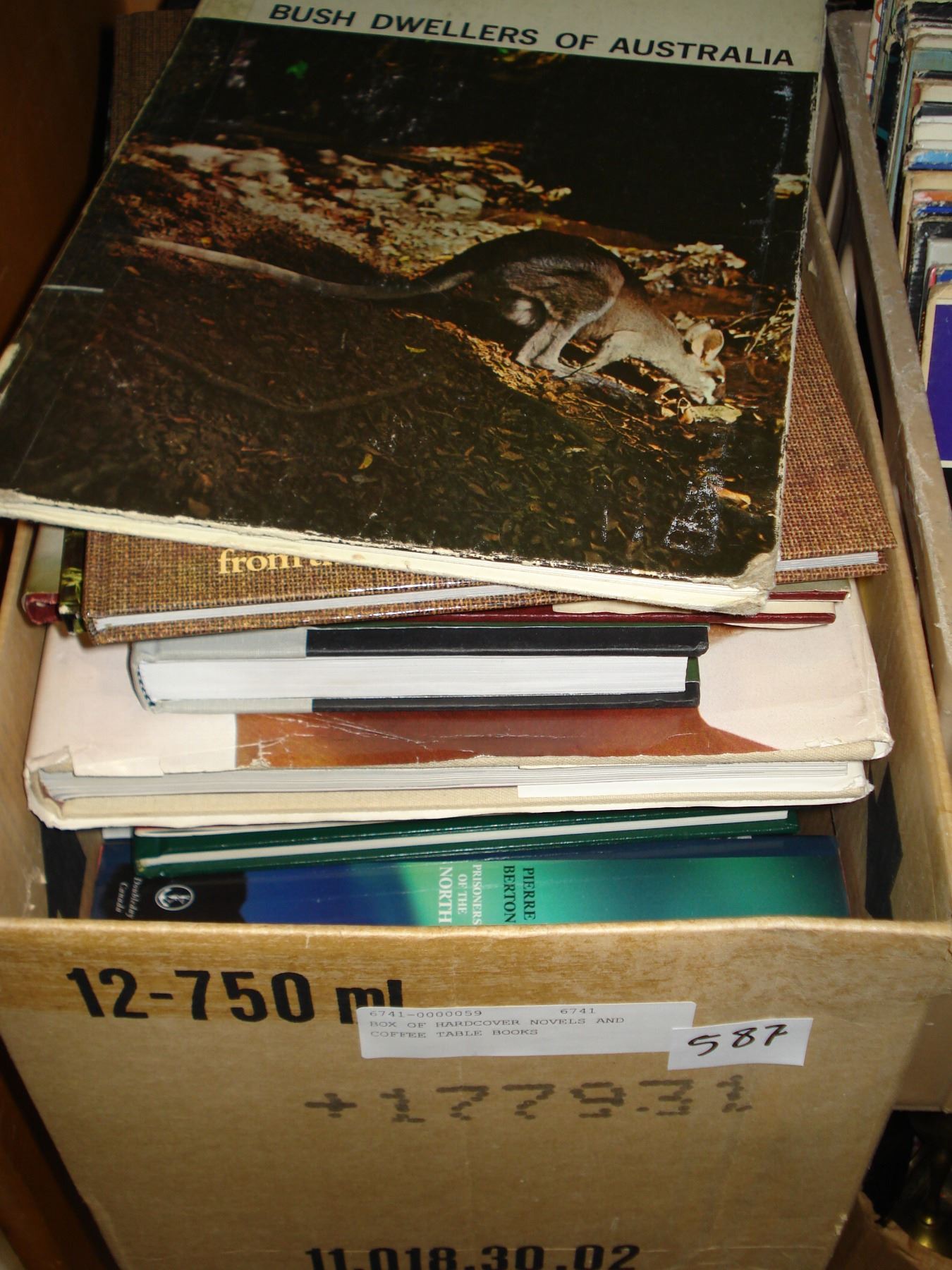 BOX OF HARDCOVER NOVELS AND COFFEE TABLE BOOKS