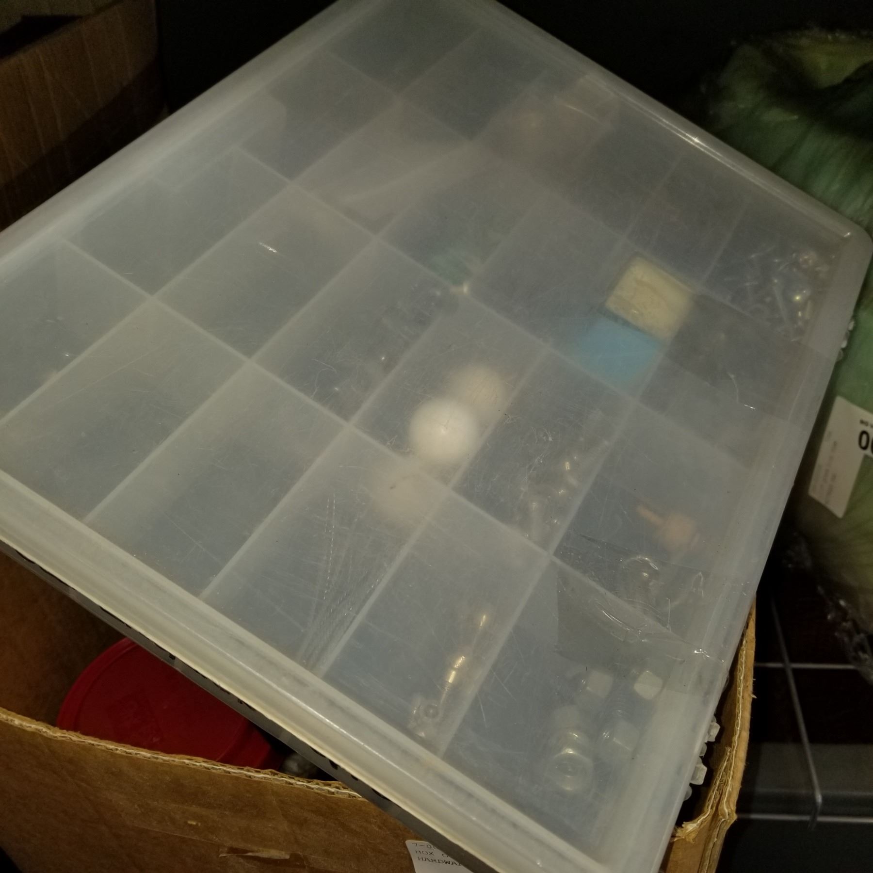 BOX OF HARDWARE ORGANIZERS W/ HARDWARE