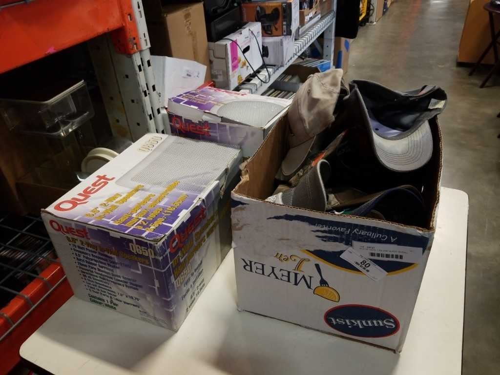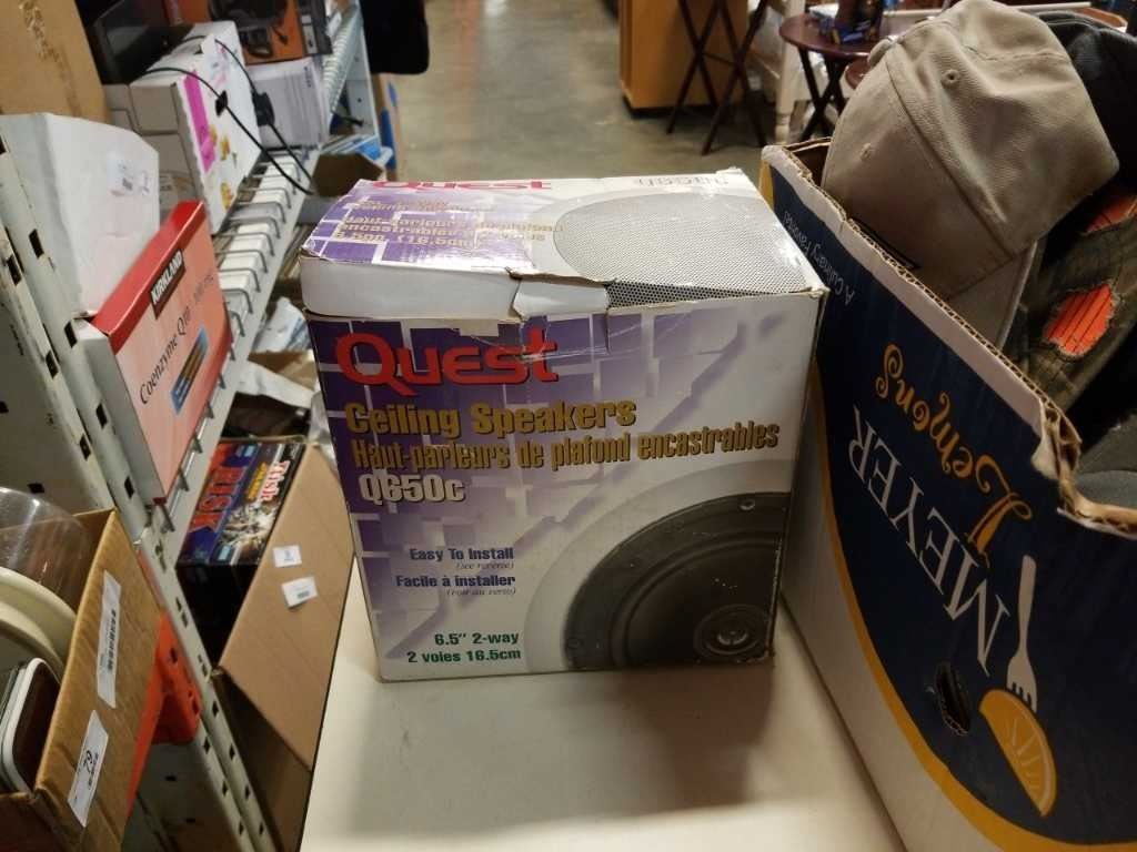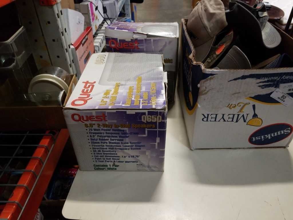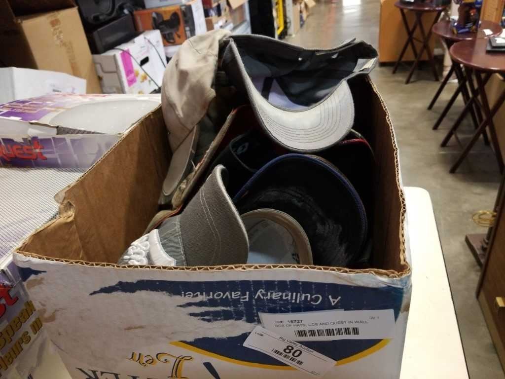 BOX OF HATS, CDS AND QUEST IN WALL SPEAKERS