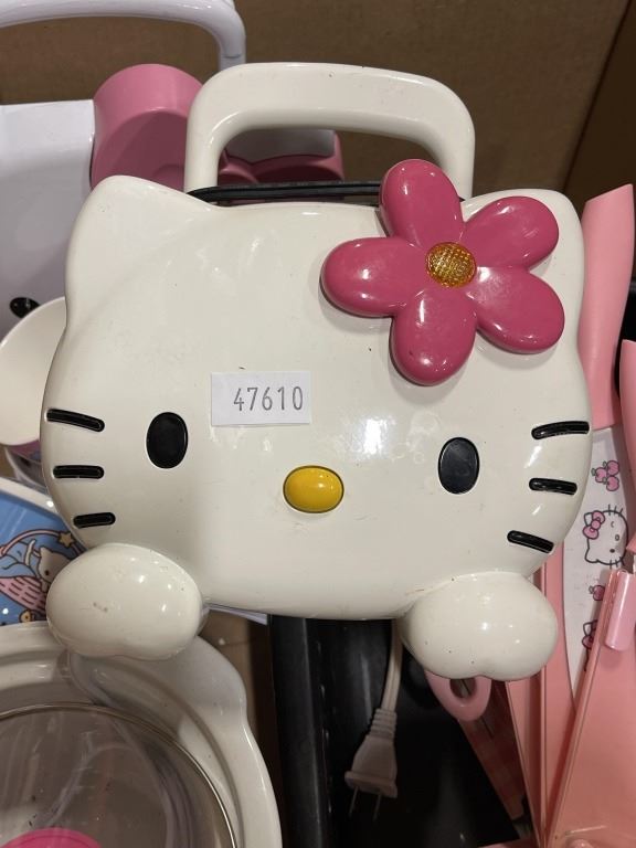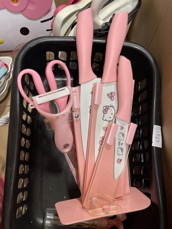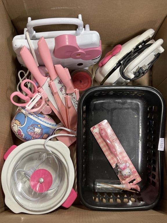 BOX OF HELLO KITTY APPLIANCES KNIVES AND COLLECTIBLES