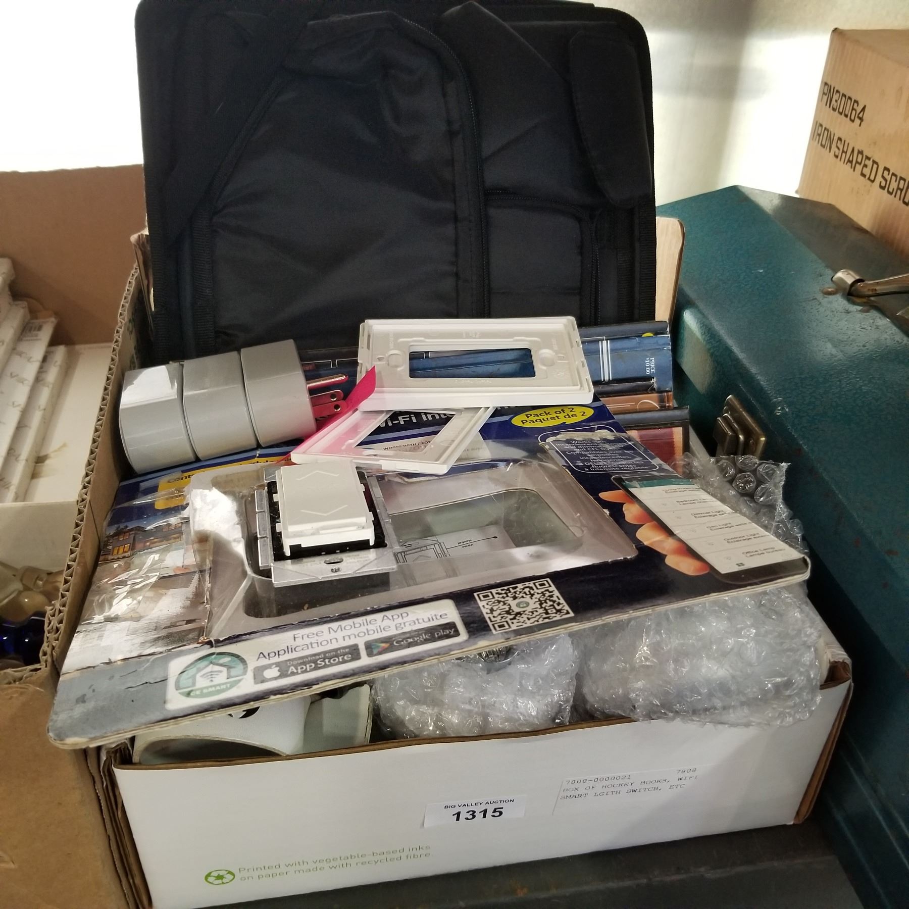 BOX OF HOCKEY BOOKS, WIFI SMART LIGHT SWITCH, ETC.