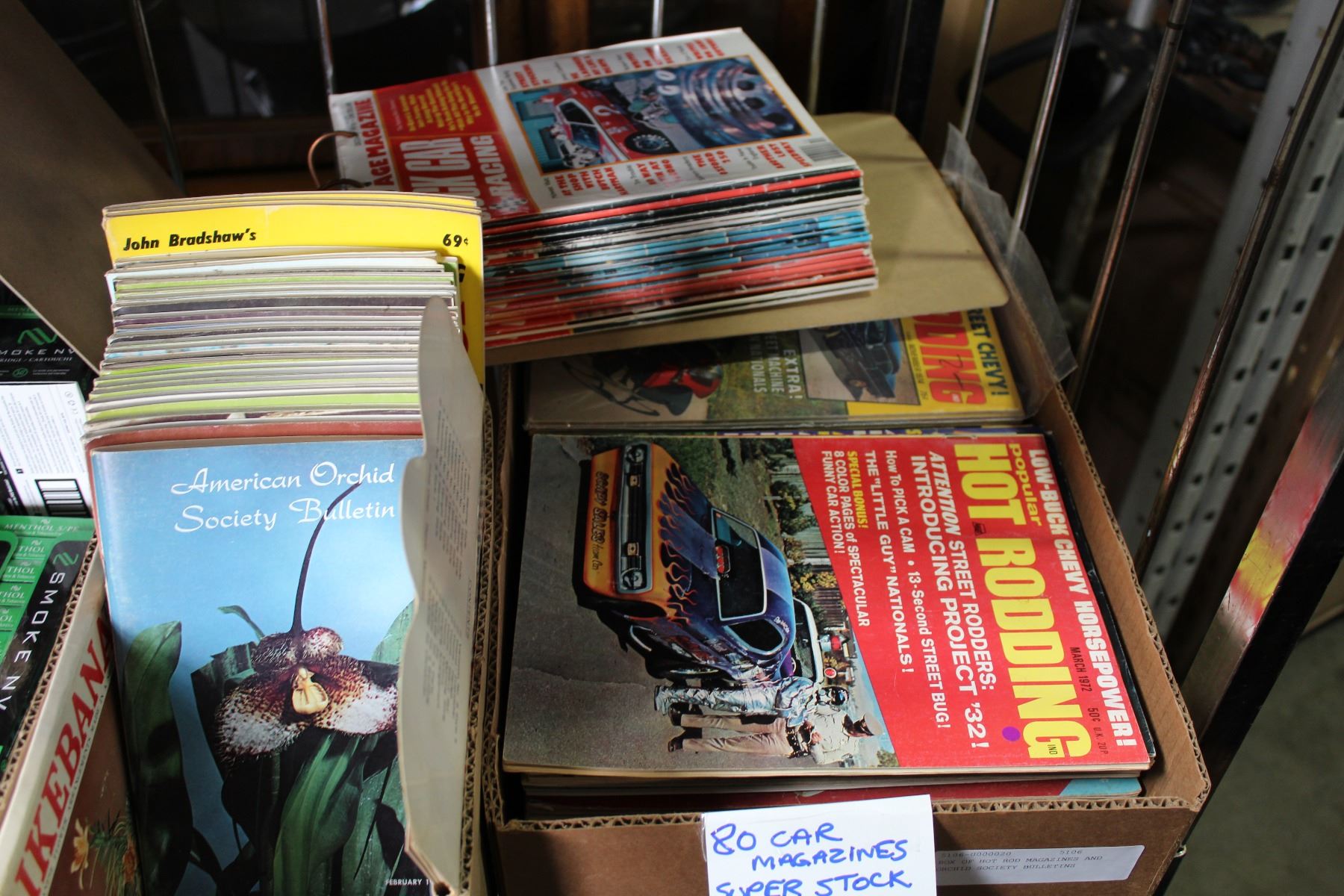 BOX OF HOT ROD MAGAZINES AND ORCHID SOCIETY BULLETINS