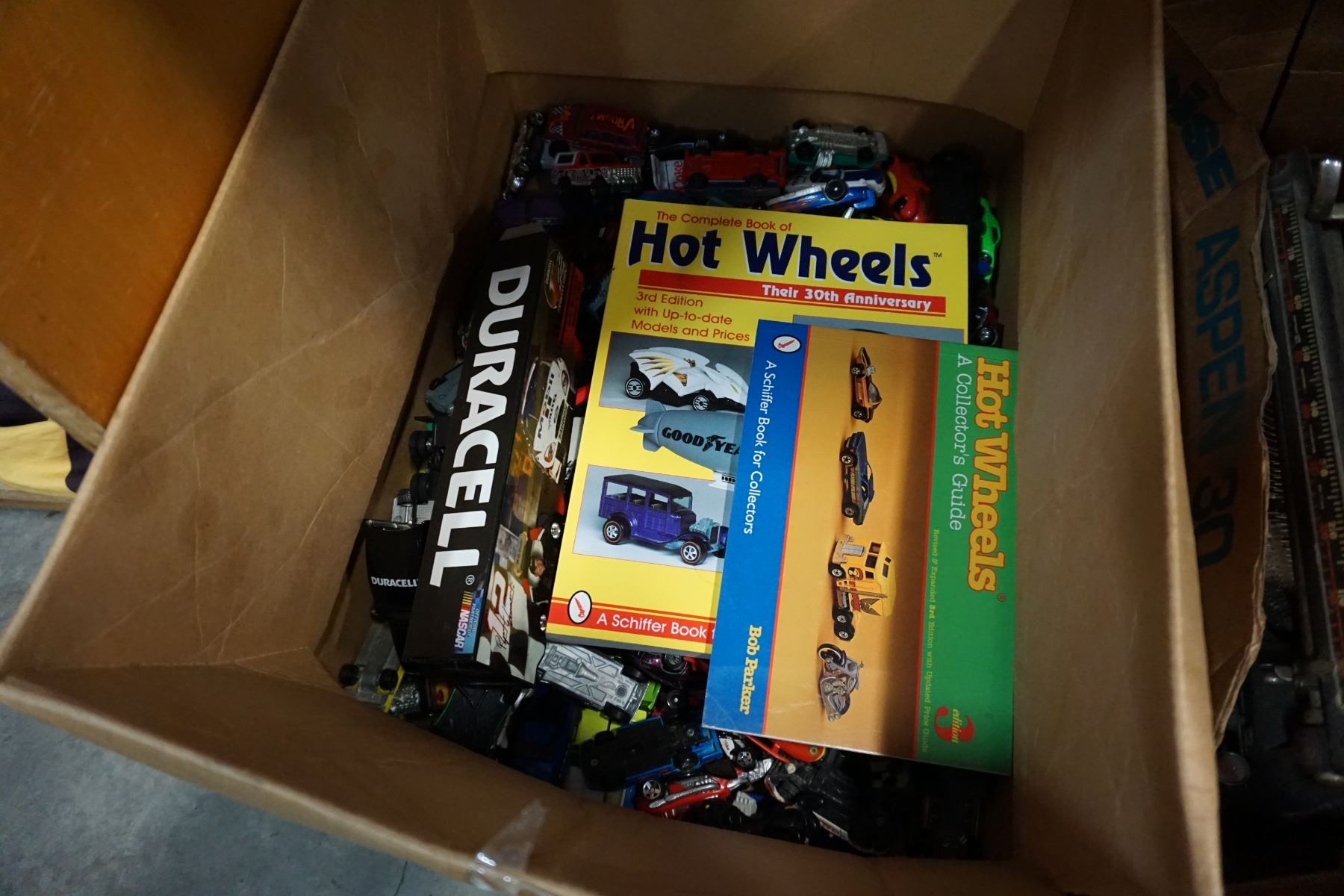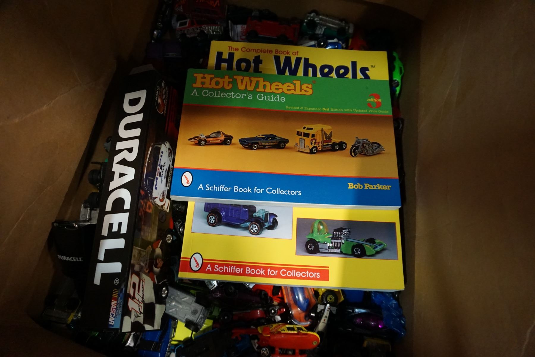 BOX OF HOTWHEELS AND HOTWHEELS REFERENCE MANUALS