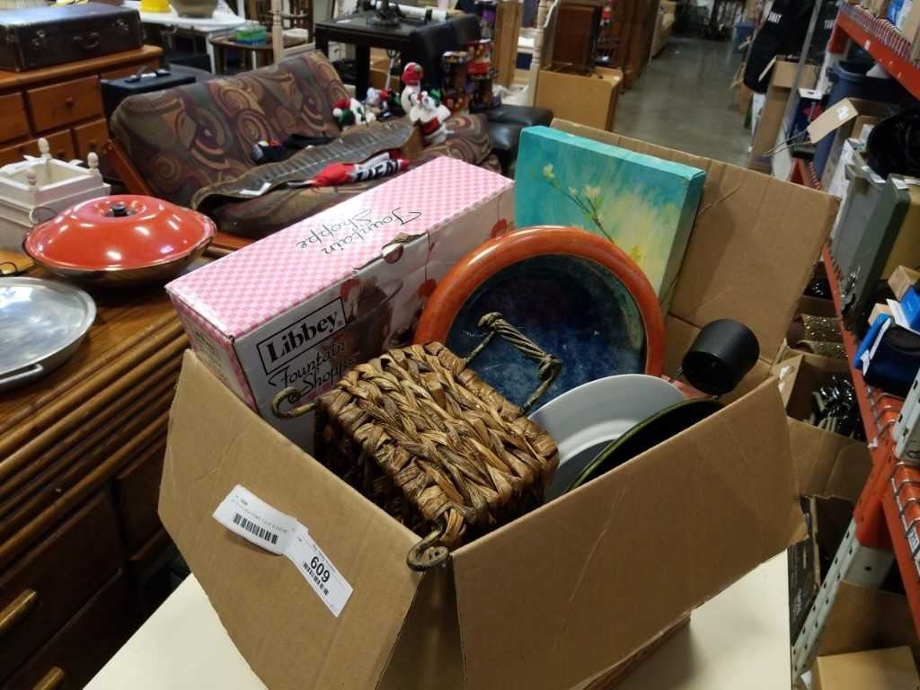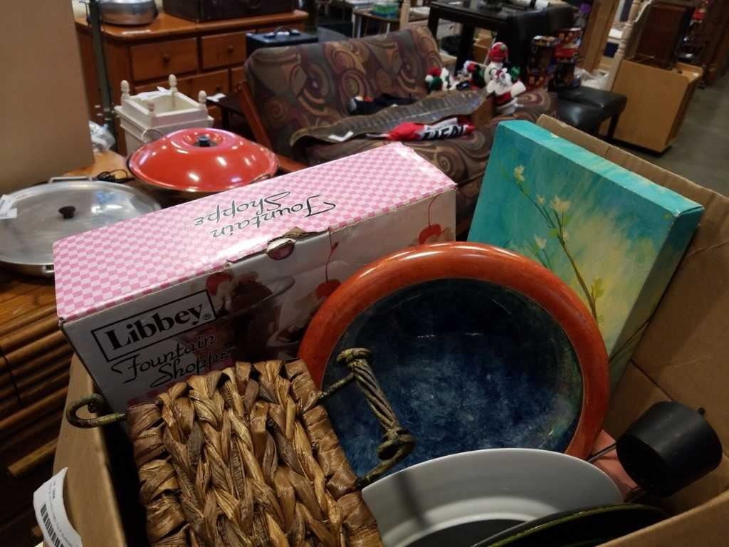 BOX OF KITCHEN ITEMS, TULIP SUNDAE GLASSES