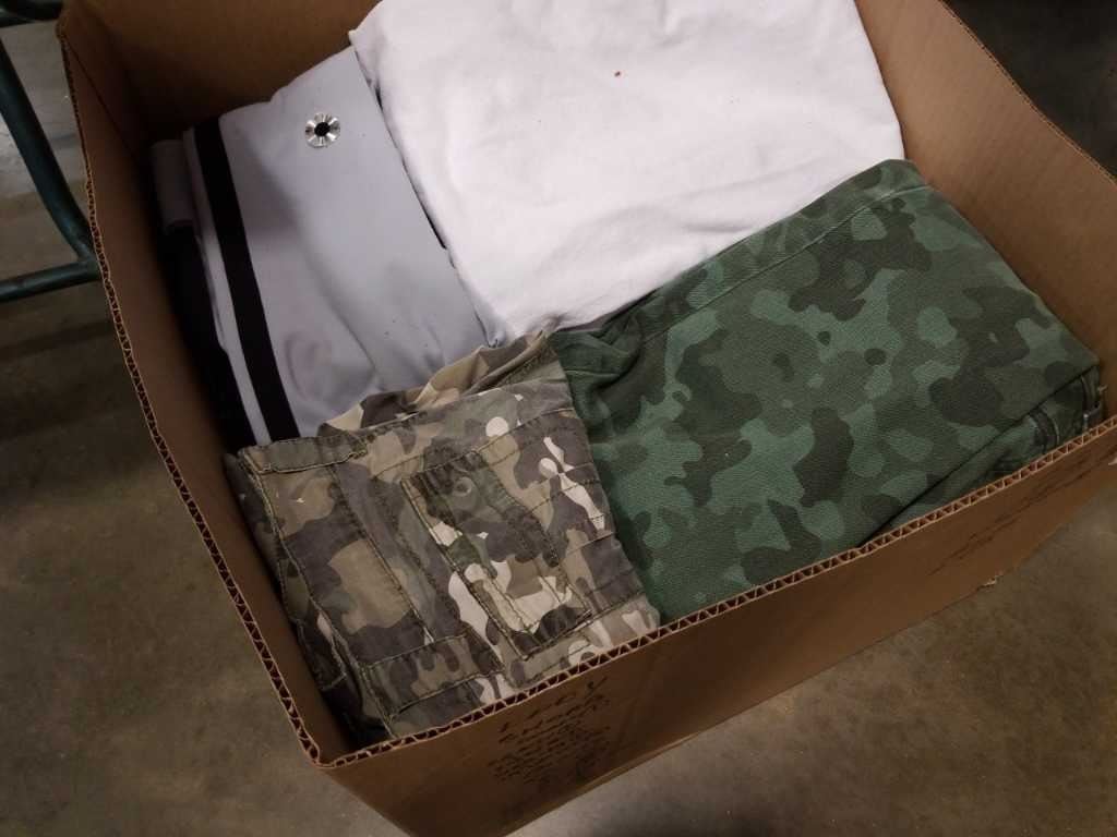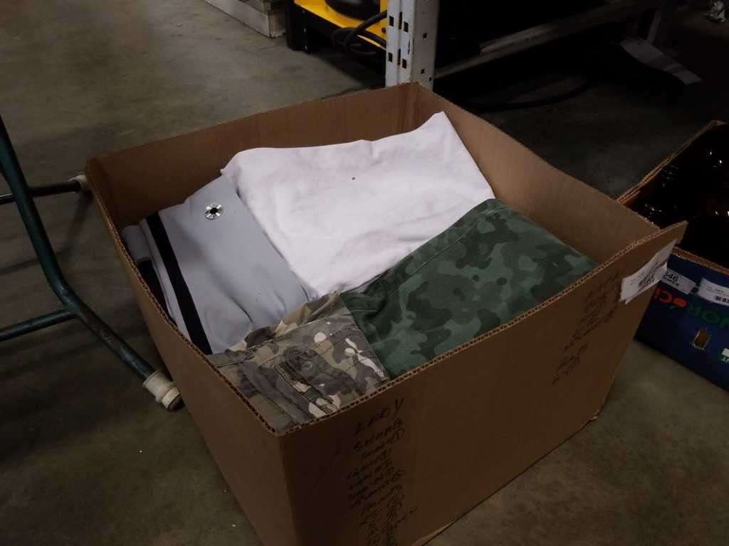 BOX OF LADIES AND MENS SHORTS AND PANTS