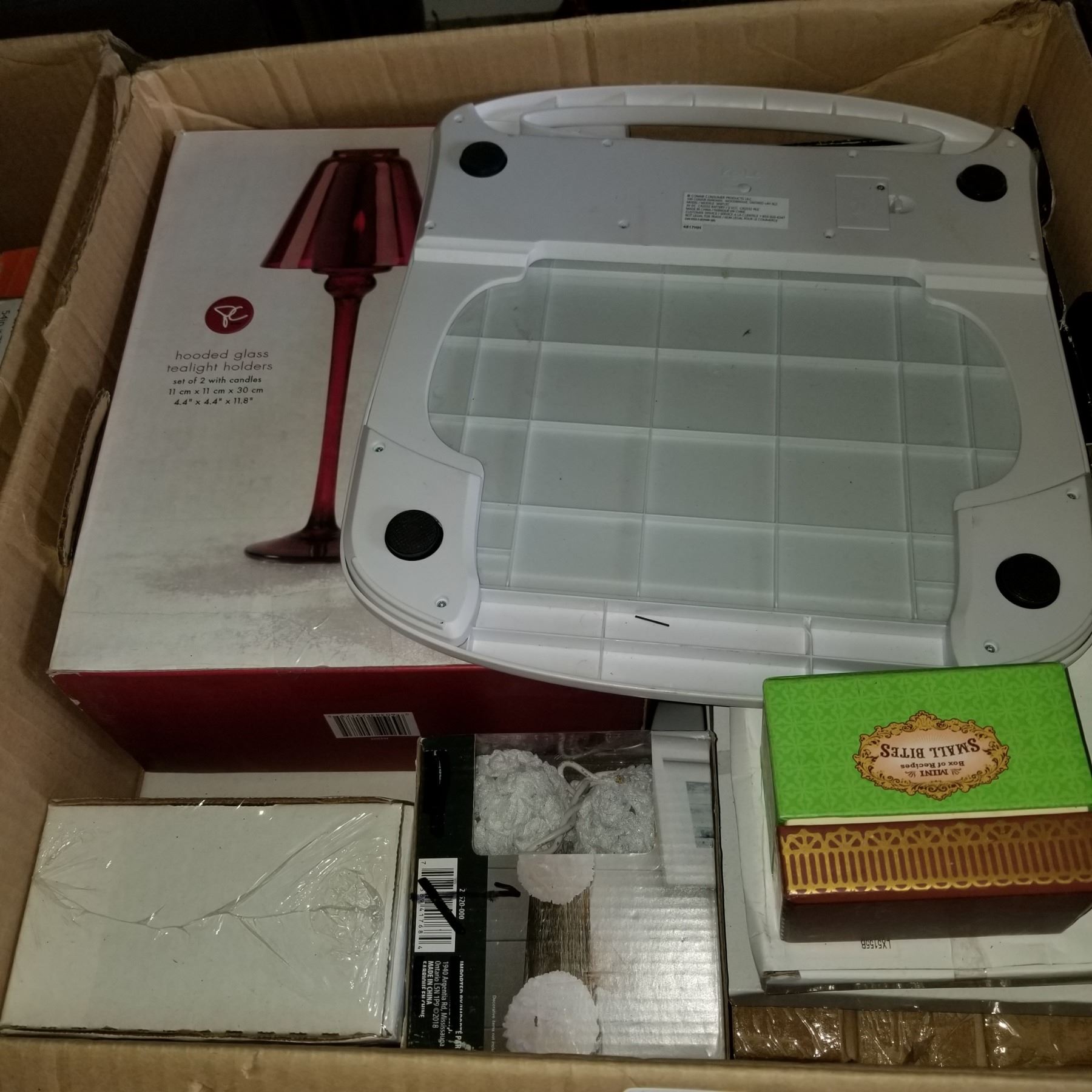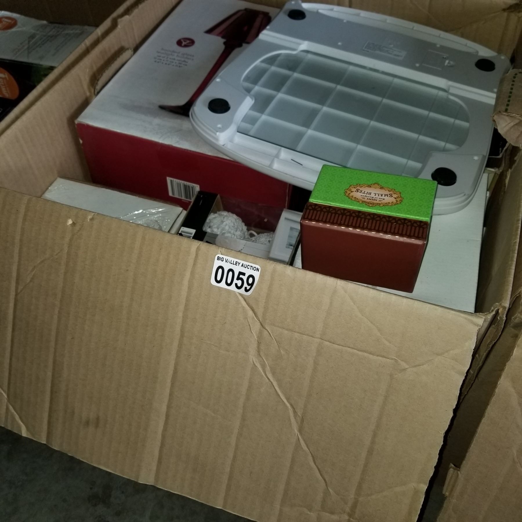 BOX OF LAMP SCALE AND ESTATE GOODS