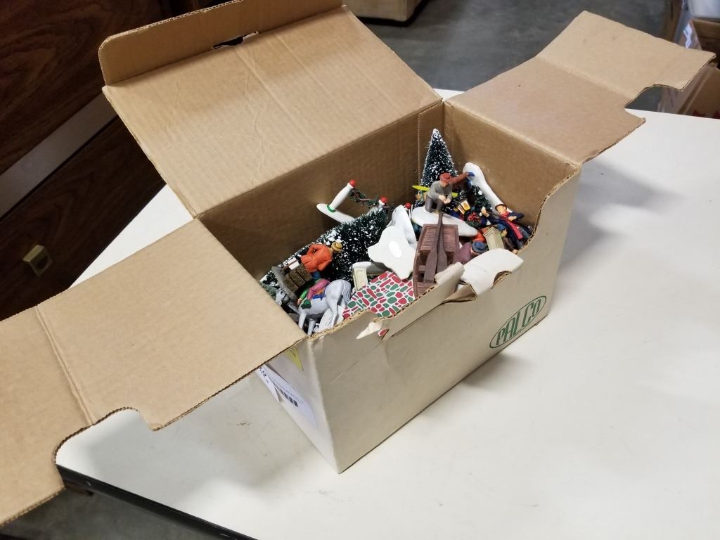 BOX OF LEMAX CHRISTMAS MINIATURES, TREES, FIGURES