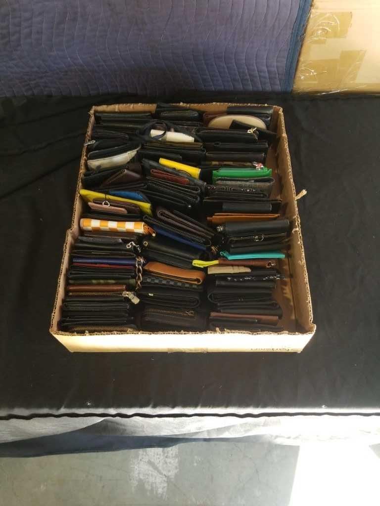 BOX OF LOST PROPERTY MENS WALLETS, CARD HOLDERS AND MORE