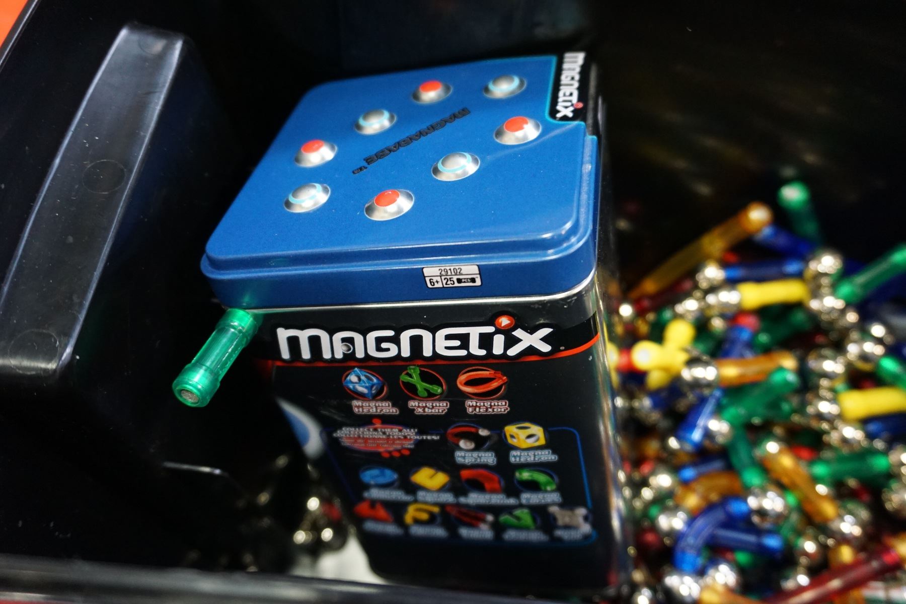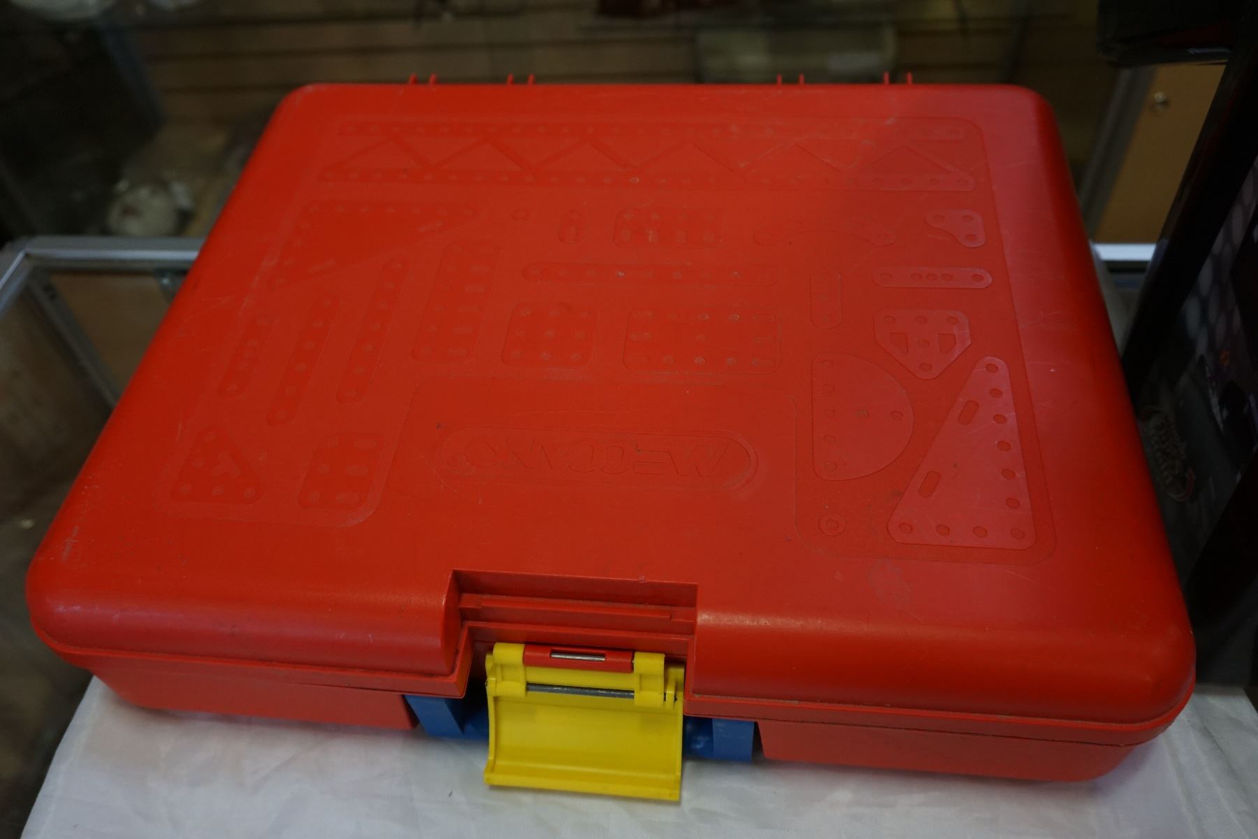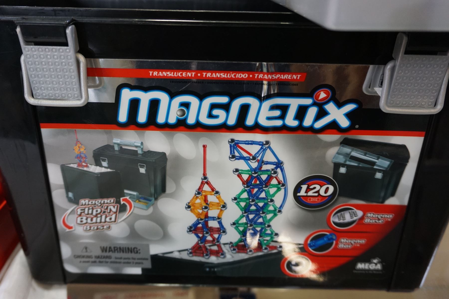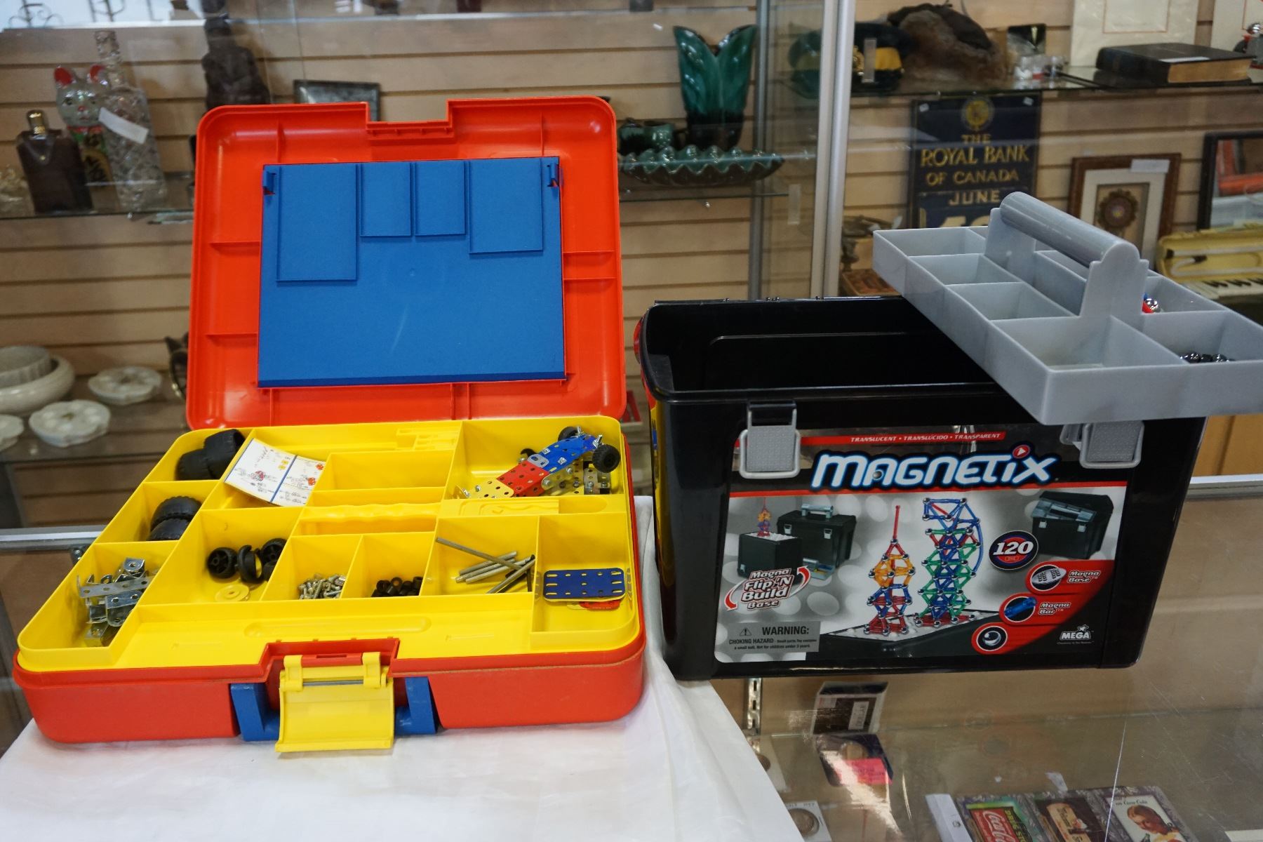 BOX OF MAGNETIX BUILDING TOY AND CASE OF MECCANO BUILDING TOY