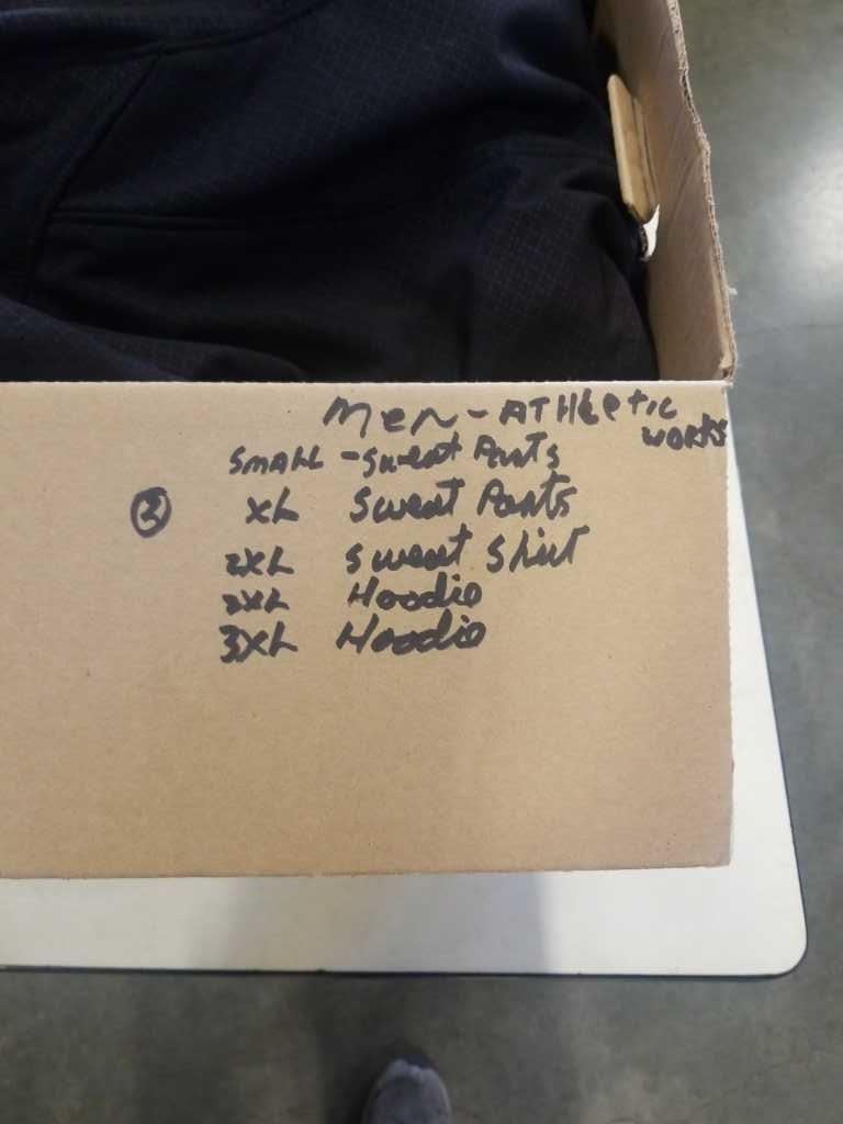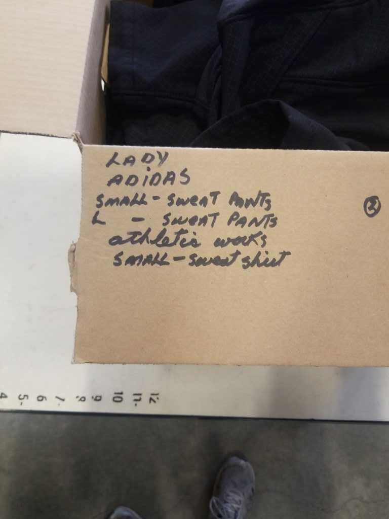 BOX OF MENS AND WOMENS ATHLETIC WEAR ADIDAS AND MORE SIZE SMALL -3XL