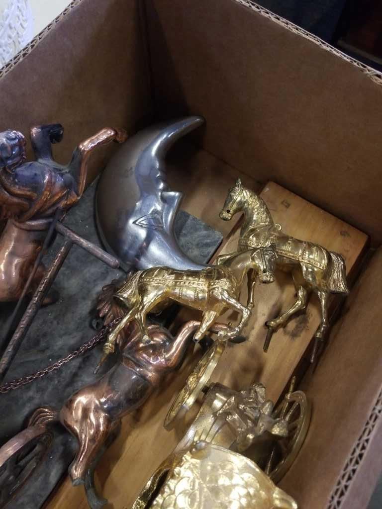 BOX OF METAL AND BRASS - CARRIAGE CLOCK CASE AND TEIRED DESSERT STAND