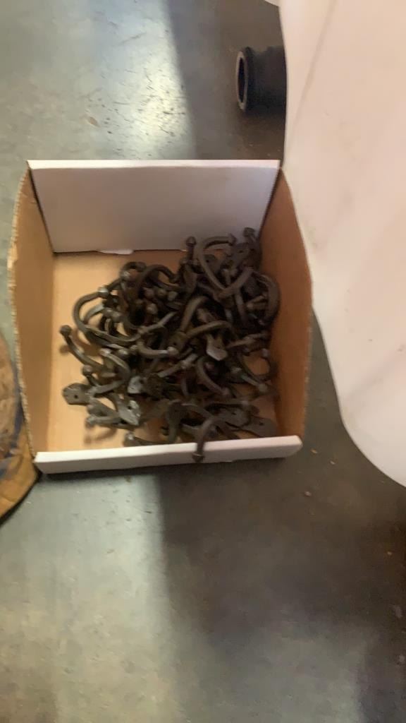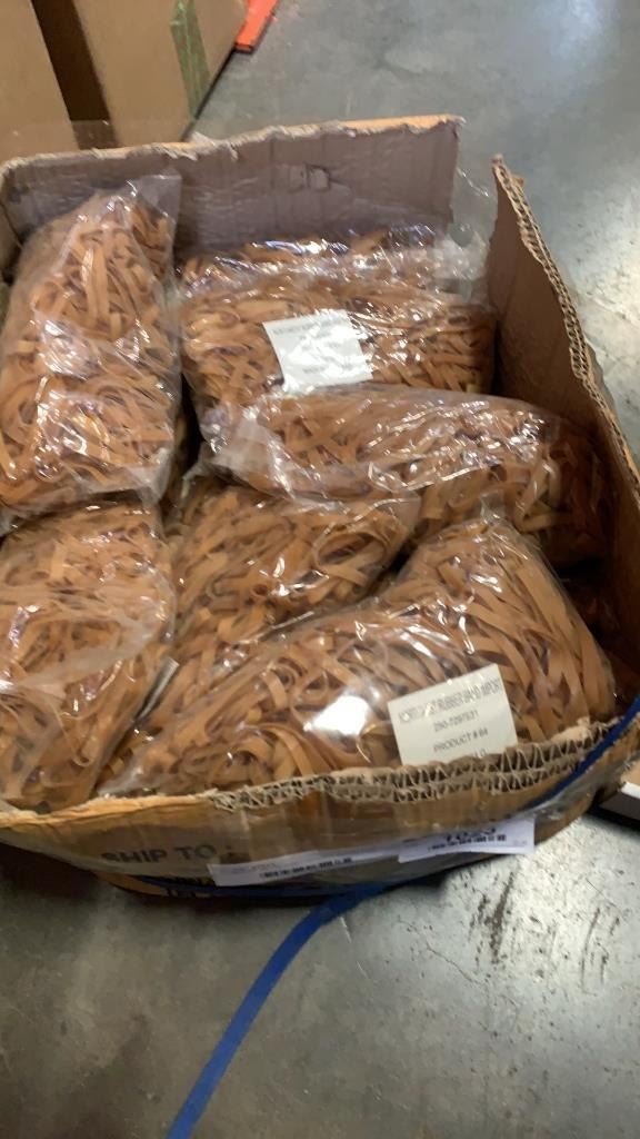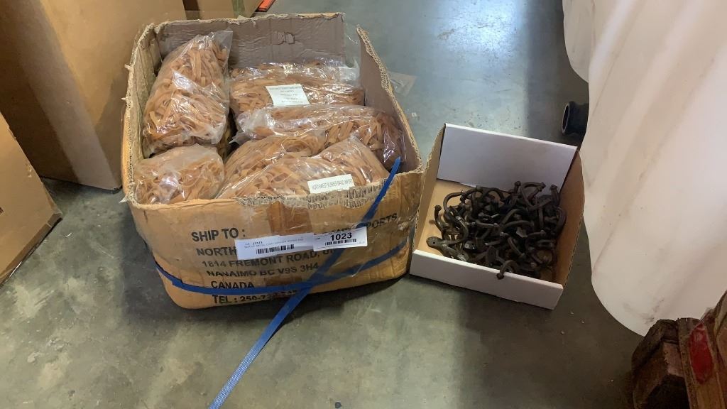 BOX OF METAL COAT HANGER HOOKS AND BOX OF RUBBER BANDS