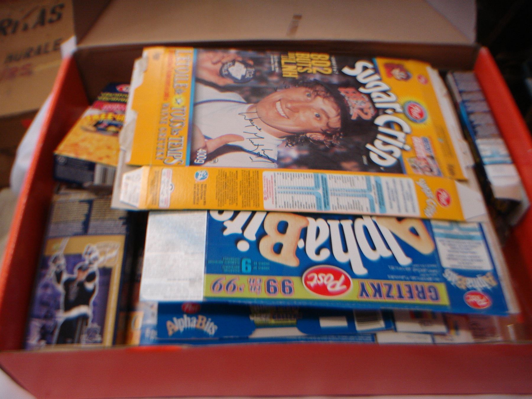 BOX OF MISC WAYNE GRETZKY CEREAL AND KD BOXES