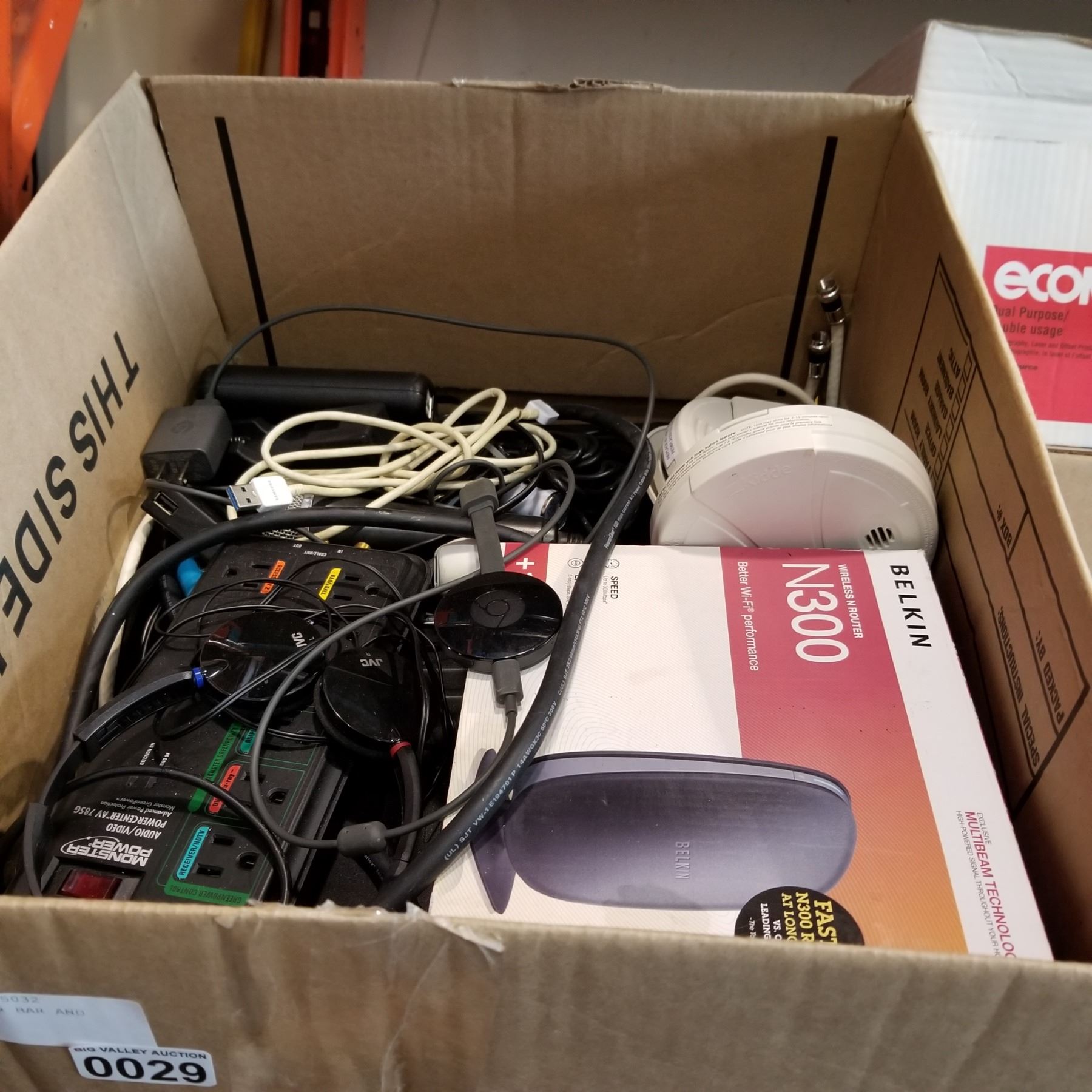 BOX OF MONSTER POWER BAR AND OTHER ELECTRONICS