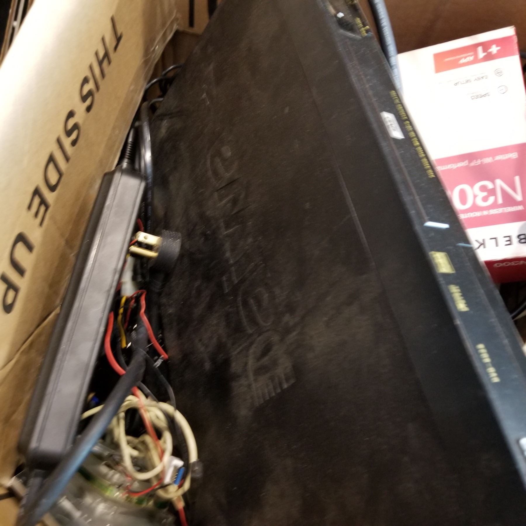 BOX OF MONSTER POWER BAR AND OTHER ELECTRONICS