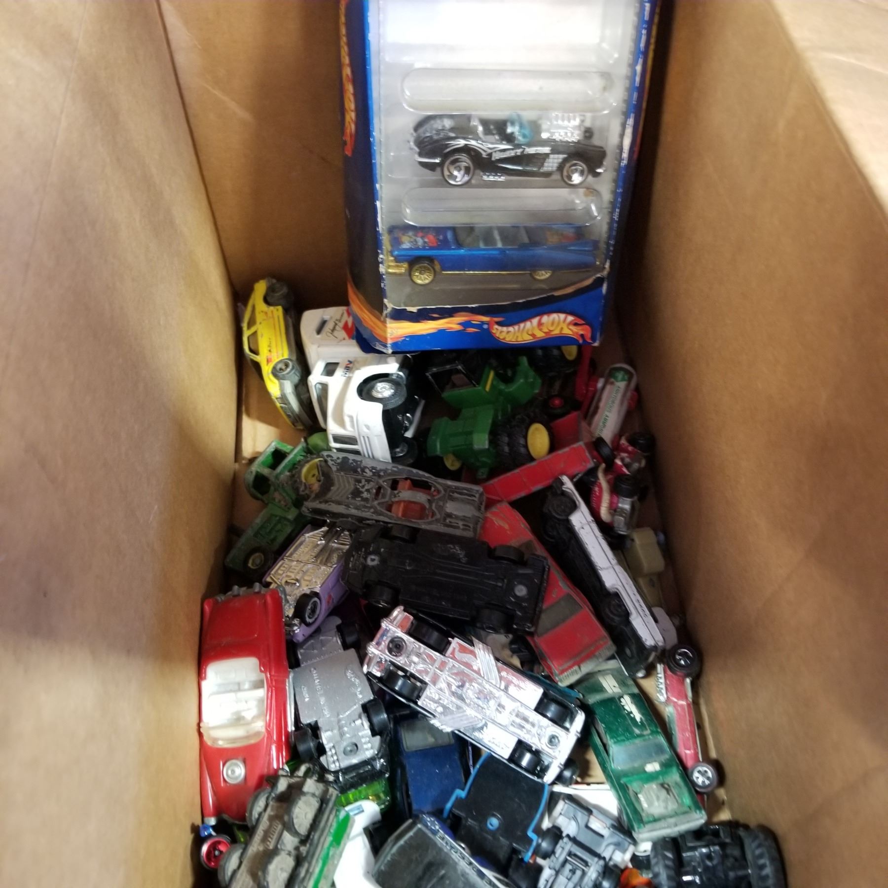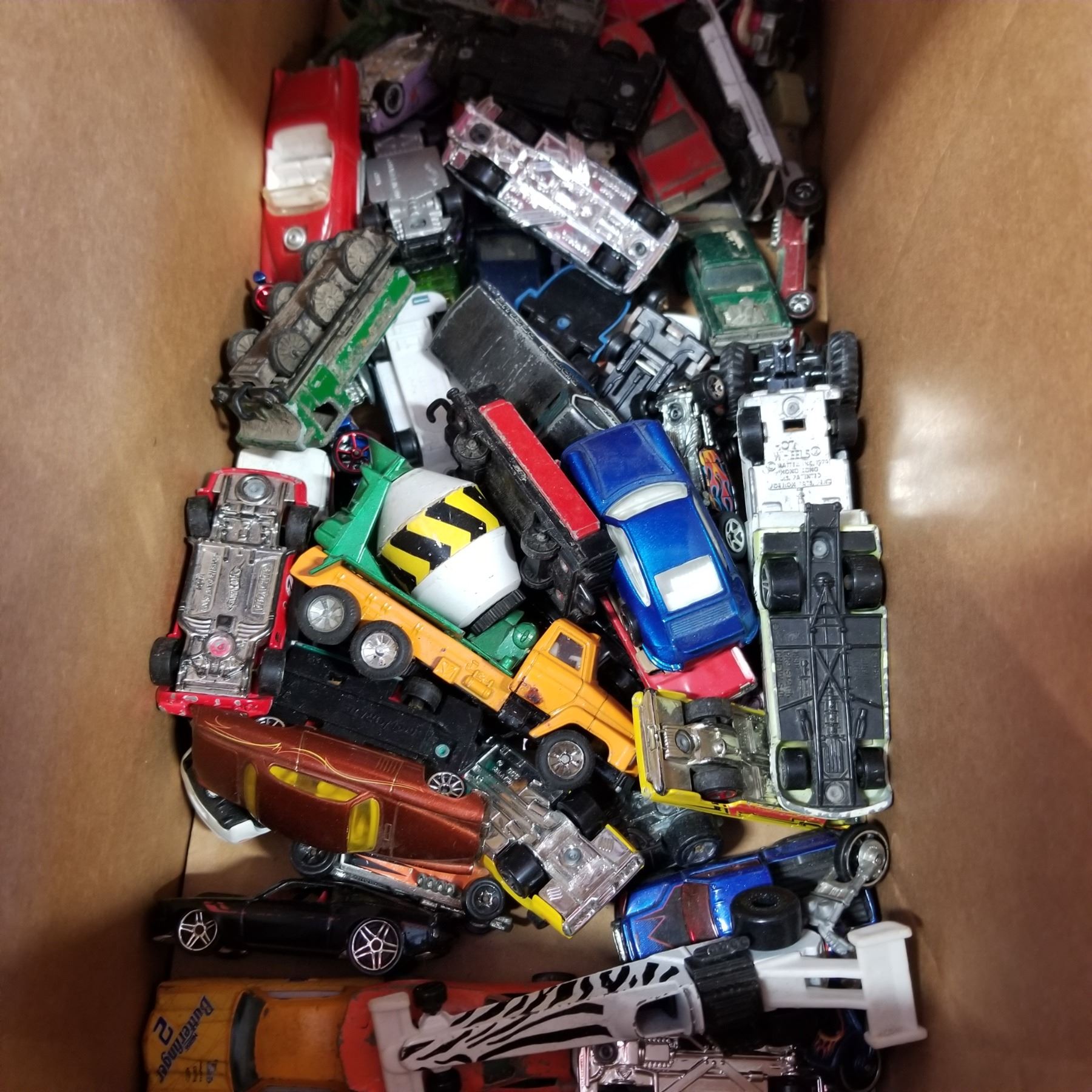 BOX OF MOSTLY VINTAGE HOTWHEELS AND OTHER CARS