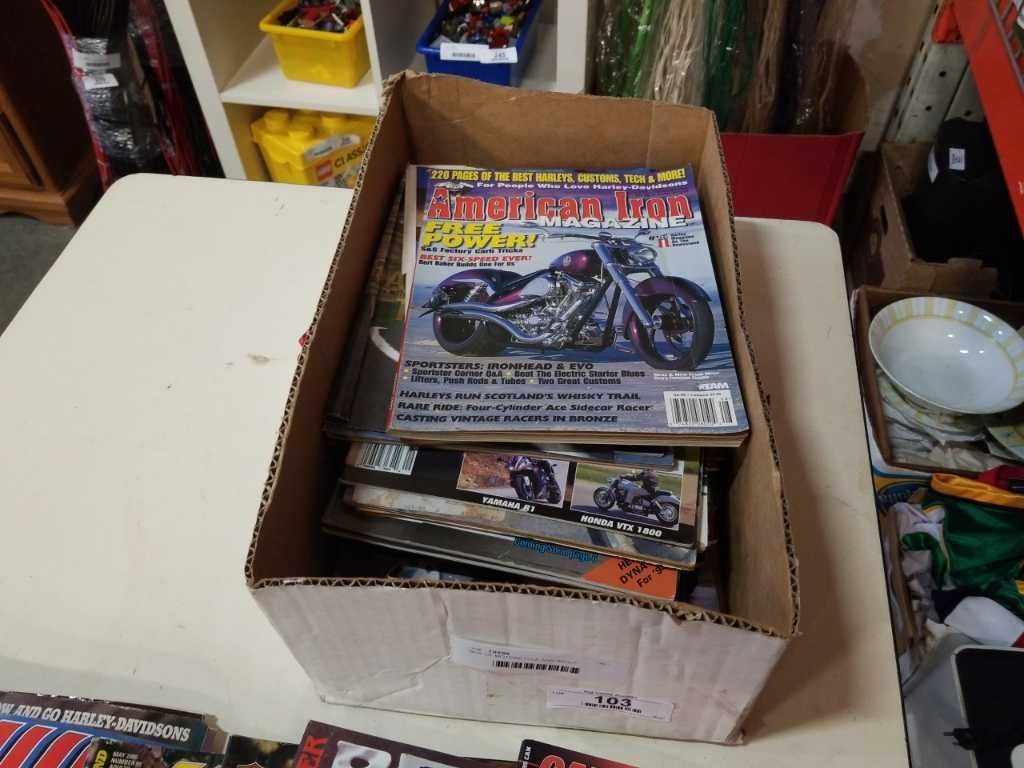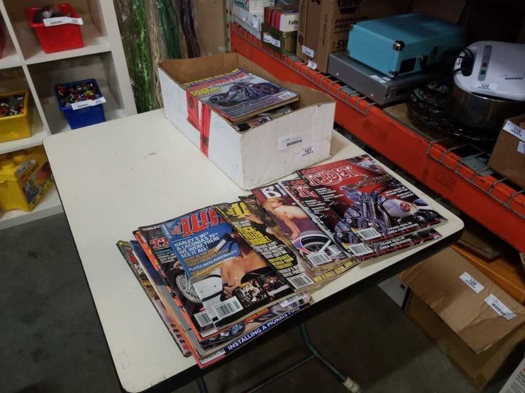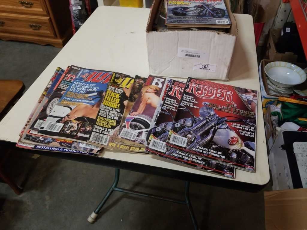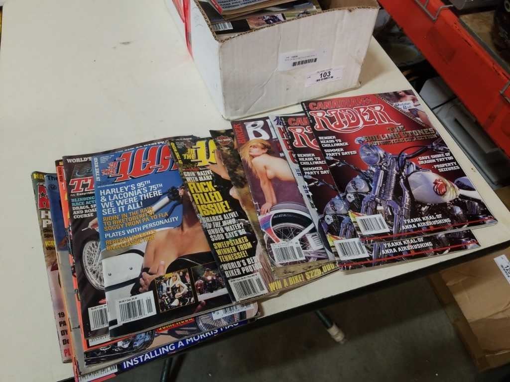 BOX OF MOTORCYCLE AND ADULT MAGAZINES