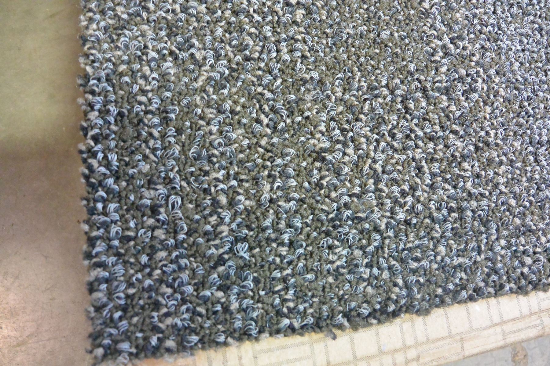 BOX OF NEW 2X2 FT HIGH TRAFFIC CARPET TILES, 20 TILES PER BOX, DARK OLIVE GREY RETAIL $120 PER BOX, $2.80 SQFT