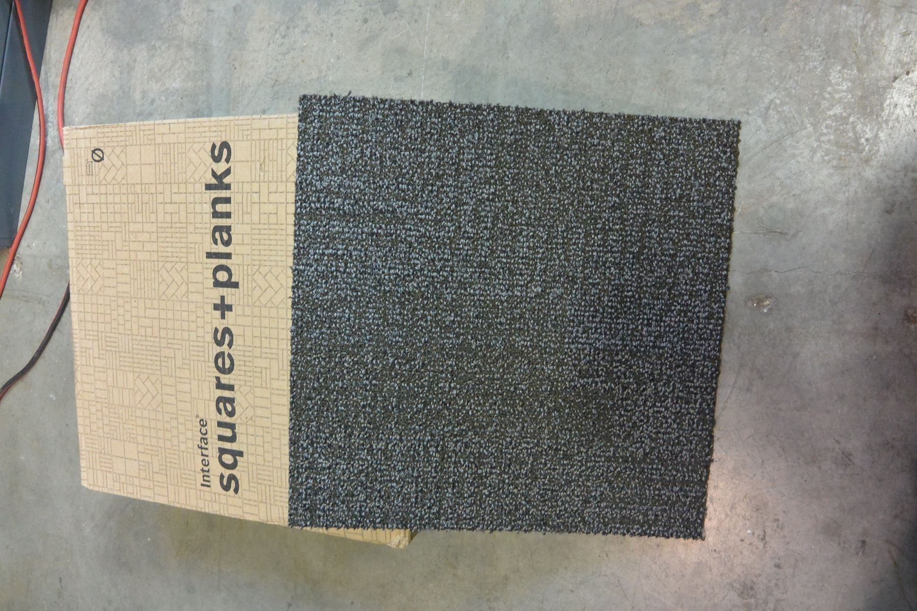 BOX OF NEW 2X2 FT HIGH TRAFFIC CARPET TILES, 20 TILES PER BOX, DARK OLIVE GREY RETAIL $120 PER BOX, $2.80 SQFT